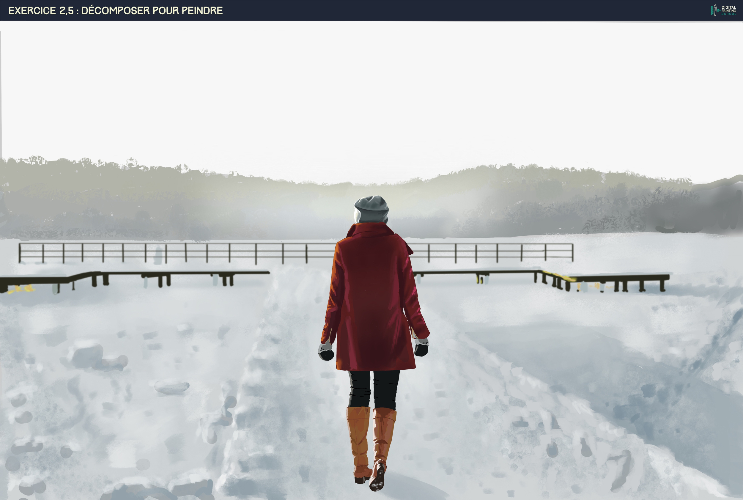 Salut @Marcassin, Tu peux remplacer "plan" par "emplacement dans ton image" si jamais 👍 Ce qui est intéressant avec la notion de plan, c'est que ça transmet aussi l'idée de "proximité relative" et donc de profondeur. Bon travail de correction en tous cas. Que ce soit pour l'épaisseur de ligne ou pour la tangente, tout est en ordre ici 👌1 point