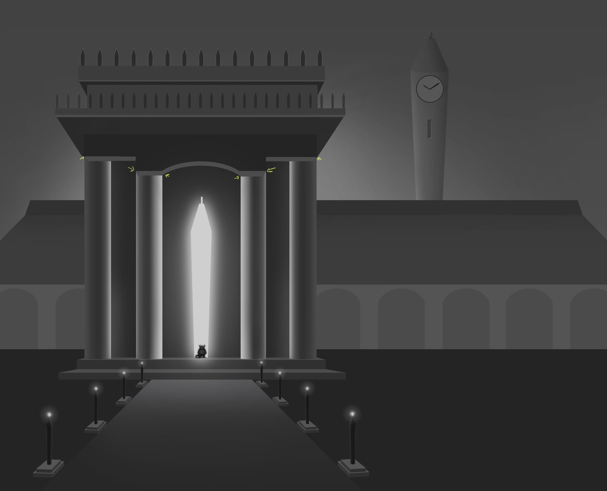 bon je me suis enfin lancé sur une idée de temple du digital, un truc dans le genre... Là ou j'ai mis les flèches je me demande si c'est des tangentes et si c'est dérangeant? Sinon ba c'est juste le début donc y'a encore du travail. J'ai pas encore travaillé sur le bâtiment derrière, je vais rajouter de la profondeur avec d'autres éléments je pense et aussi combler un peu à droite. Pour info la lumière vient de la porte du temple et de derrière aussi et la focale sera la porte avec le perso. voilà ou j'en suis pour le moment . Ah oui pour le process, je suis parti sur du lasso avec des formes simples et je sculpte dedans pour obtenir un design qui me plait. Un peu comme le process du train endiablé de la partie 2 pour ceux qui l'on fait 😉