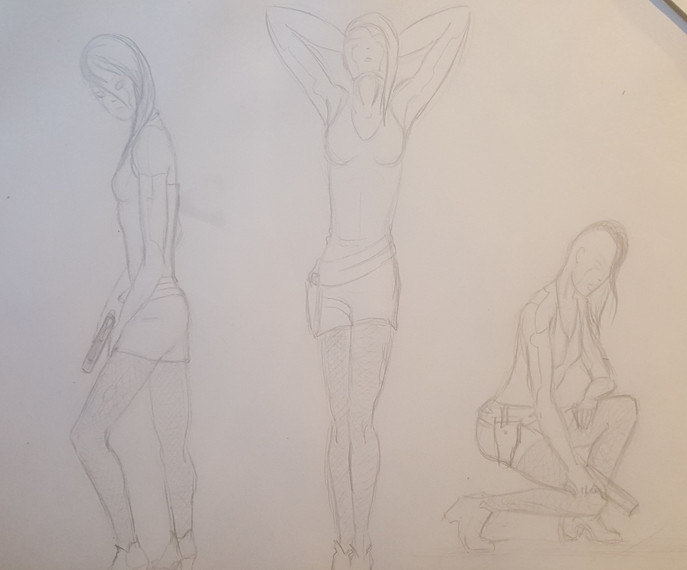 J'arrive tard sur le challenge, car j'ai mis longtemps à me motiver pour. C'est en fait l'envie de faire des divinité peu connues qui m'a motivée. J'ai choisi Léthée la déesse de l'oubli, car c'est pour elle que j'ai eu le plus d'idées. J'en ai pour d'autres, mais ils sont pas assez abouties et j'aurais juste pas le temps (je suis déjà grave à la bourre. J'ai fait pas mal de recherches sur papier, je les ai pas encore pris en photo, je fais ça plus tard. Mon idée est que la déesse de l'oubli est une déesse qui oublie. En gros, les divinités Grecque se caractérisant par un côté très humain malgré leur statut divin, j'ai estimé normal que la déesse de l'oubli se caractérisant par le fait d'être tête en l'air, oubliant ce qu'on lui dit, ce qu'elle doit faire, ses fidèles et même ses affaires. Au début j'ai voulu faire une déesse qui apparaît au hasard mais oublie pourquoi elle est apparue, mais j'arrivais pas à rendre ça visible (ni dans ma tête, ni sur papier) du coup j'ai fini par changer d'idée, et je suis plus sur elle vient de se rappeler d'un truc qu'elle a oublié, tout en claquant des doigts (en gros, ce qu'elle peut faire par ses pouvoirs elle le fait en claquant des doigts, je laisse la personne qui regarde l'illustration décider si ça un rapport avec ce qu'elle a oublié ou pas) Autour d'elle, elle aura plein d'objets qu'elle aura dispersé car bah voilà elle les oublie. Peut-être même un autel d'elle à proximité. L'environnement, n'hésite encore, mais je pensais aux enfers, vu qu'elle a un fleuve en son nom qui est lié à elle. Je poste un bouillon de la silhouette, et des essais de silhouette que j'avais à côté. Au début, j'avais un truc très statique en tête, j'ai même posé dessus (pour avoir une ref photo,car je suis pas assez bonne en construction d'imagination, mais finalement en réfléchissant, j'ai préféré quelque-chose de plus dynamique.