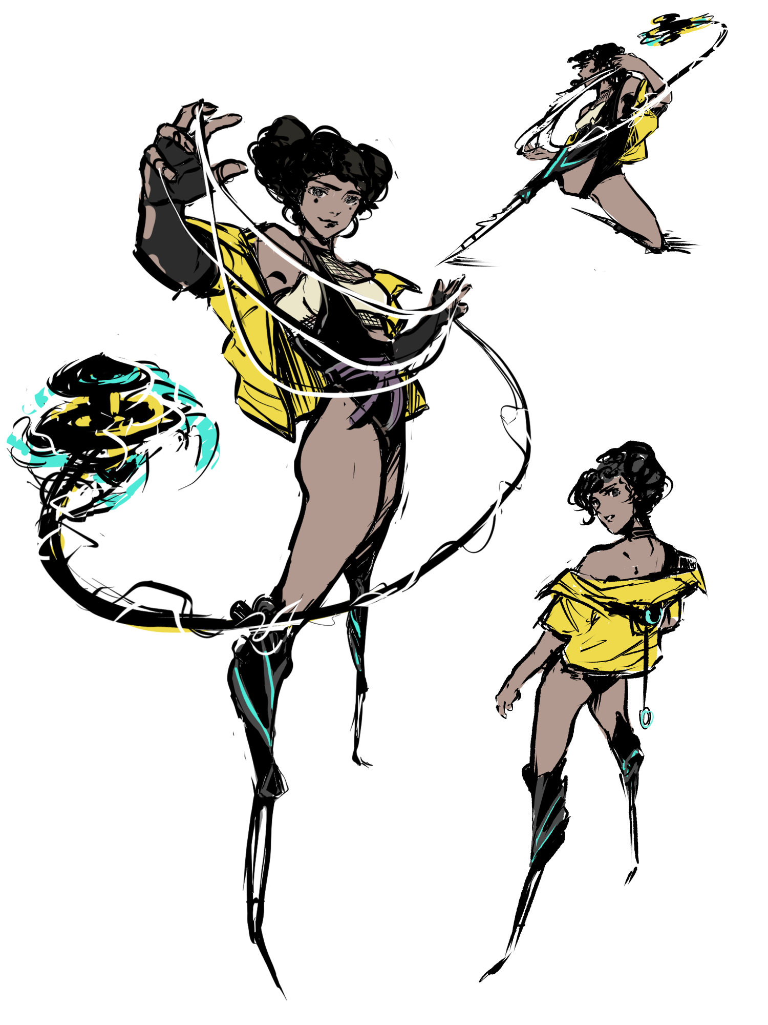 Bonjour, Hop voici mon WIP pour ce challenge ! J'ai pris l'artbook de cyberpunk2077 il est super intéressant et beau ! 🙂 Je vais le bouquiner un peu et essayer de faire un concept d'environment original. Mais dans un premier temps, j'ai envie de créé pour la première fois un perso complet, j'en ai jamais fais réellement complétement et encore moins en 2D. Pour ça je je vais m'aider un peu de mes connaissances en 3D pour avoir un peu de confort et obtenir une perspective cool. La première fois que j'ai découvert le cyberpunk réellement c'était avec GUNNM et le fameux rollerball, alors à chaque fois l'idée de mettre des rollers me revient dans mon esprit et ça me permettra de faire une pose dynamique. J'ai cherché un moyen de locomotion similaire comme un skate, des chaussures sur des coussins d'air, mini jetpack , chaussure avec une miniroulette, mini chenille de tank... ) mais après réflexion je vais rester sur les rollers pour mon plaisir de mon premier perso ( j'ai découvert plein de vidéo de roller durant mes recherches pour avoir des références de position en mouvement. ça permis de découvrir pour des heures tout un nouvel univers que je connaissais pas ^^. Mais pour essayer de faire quelque chose d'original j'ai réfléchis à un design qui m'a donné le concept du perso : Une fille musclée tout en chair et os qui revendique la beauté de la femme sans amputations esthétique de protèses derniers cris ou d'implants appartenant à une megacorporation . Toutefois elle possède tout un exosquelette plutôt fais maison mais de haute-technologie ajusté à son corps sans le détériorer, avec un côté très PUNK et rebelle ( elle aura une lame ) et se drogue toute même avec des substances "naturelles" pour se booster l'esprit et le corps dans les combats contre les megacorporations. Ses jambes vont être "nude" et on verra même ses pieds nus avec les roller un peu sur le côté du pied au lieu de l'entourer complétement... mes recherches/moodboard :