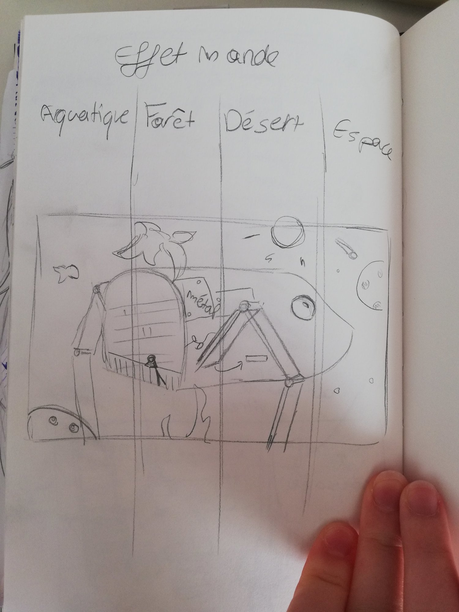 Hello ! Bon courage à tout le monde pour le challenge ^^ mes références : je vais rechercher une atmosphère très douce, chaude et lumineuse, d’où le fait que je récupère des planches variées mais avec une ambiance plutôt feelgood 🙂 je pense jouer sur des couleurs dorées, cyan et magenta 🙂 Après pas mal de recherches, je me suis lâchée la main sur des enviros pour trouver ma palette de couleur, le style d’environnement que je voulais 🙂 C’est donc des résultats assez débridés que j’ai là, comme un entraînement avant de sauter dans le grand bain, et pour laisser venir les idées 🙂 voilà pour ma phase de recherches ^^ J'ai tenté plusieurs croquis, et celui qui a eu ma préférence et celui ci ^^
