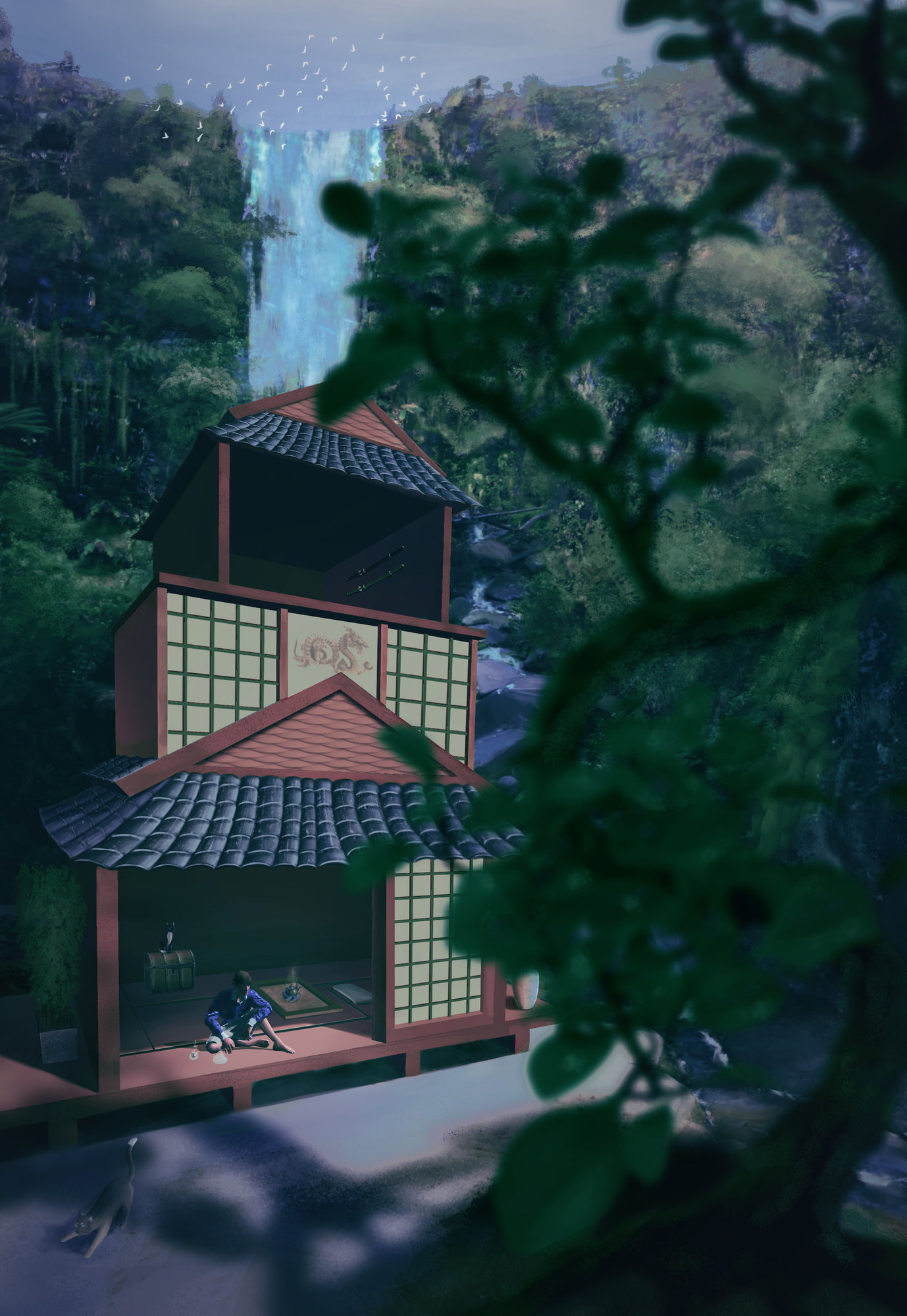 Pour ce challenge 11, je pars sur une maison - arbre avec plein de chats ! ^^ Je fais rarement des grandes illu avec plein d'éléments alors je suis un peu perdue.. Je crois aussi que je devrais plus réfléchir aux détails. Je suis preneuse de critiques et d'idées ! J'imagine ajouter à la fin une bonne grosse lumière qui viendrait du soleil à travers le feuillage ^^