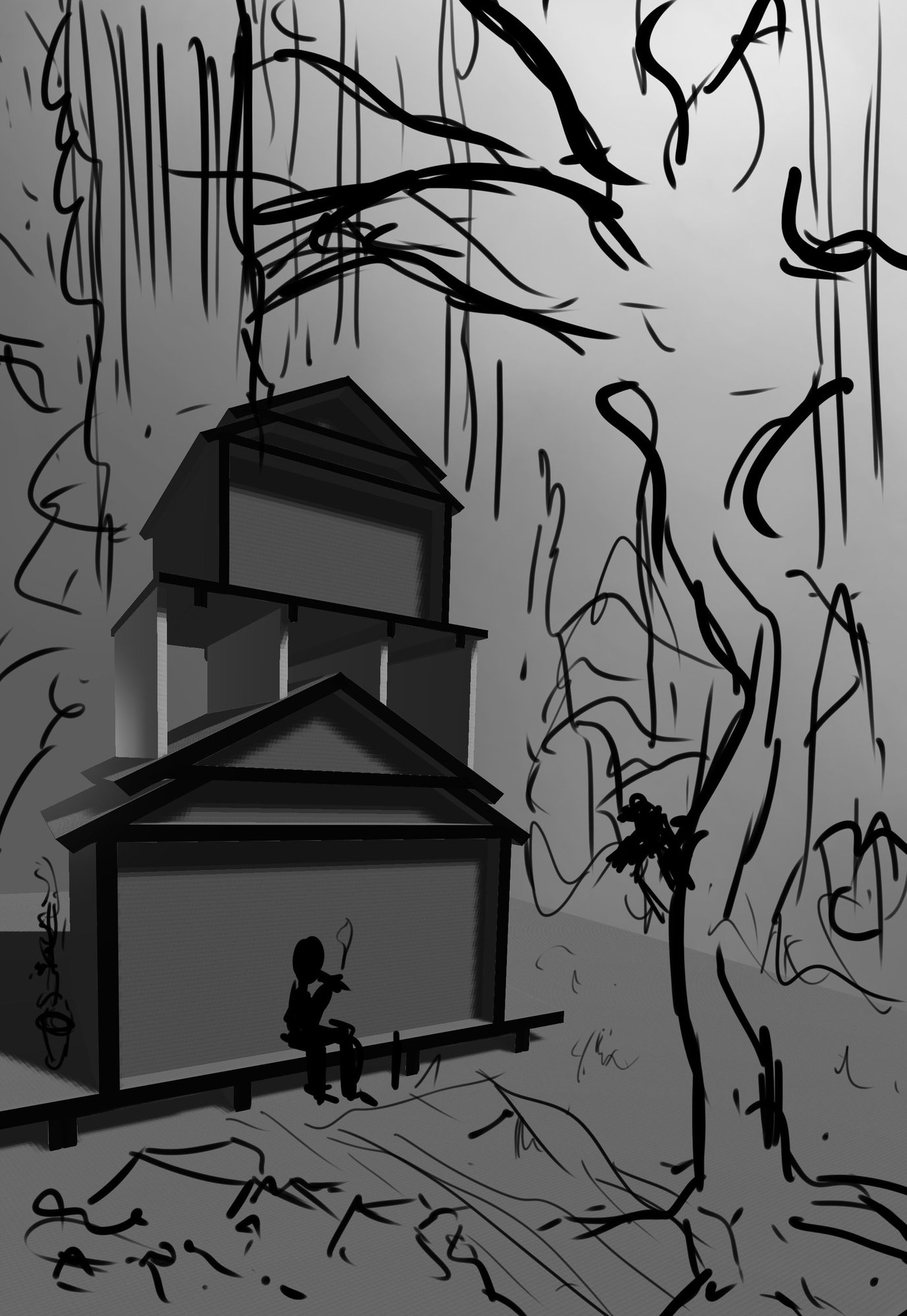 Salut tous le monde ! alors je me lance dans une deuxième illustartion je ne sais pas si j 'aurais le temps de la finir mais je me suis sentis inspiré .. Alors voila le concept c'est une maison cette fois-ci dans les nuages , elle me servirai d'habitat mais aussi d'observatoire , voila un premier croquis dites moi ce que vous en penser :