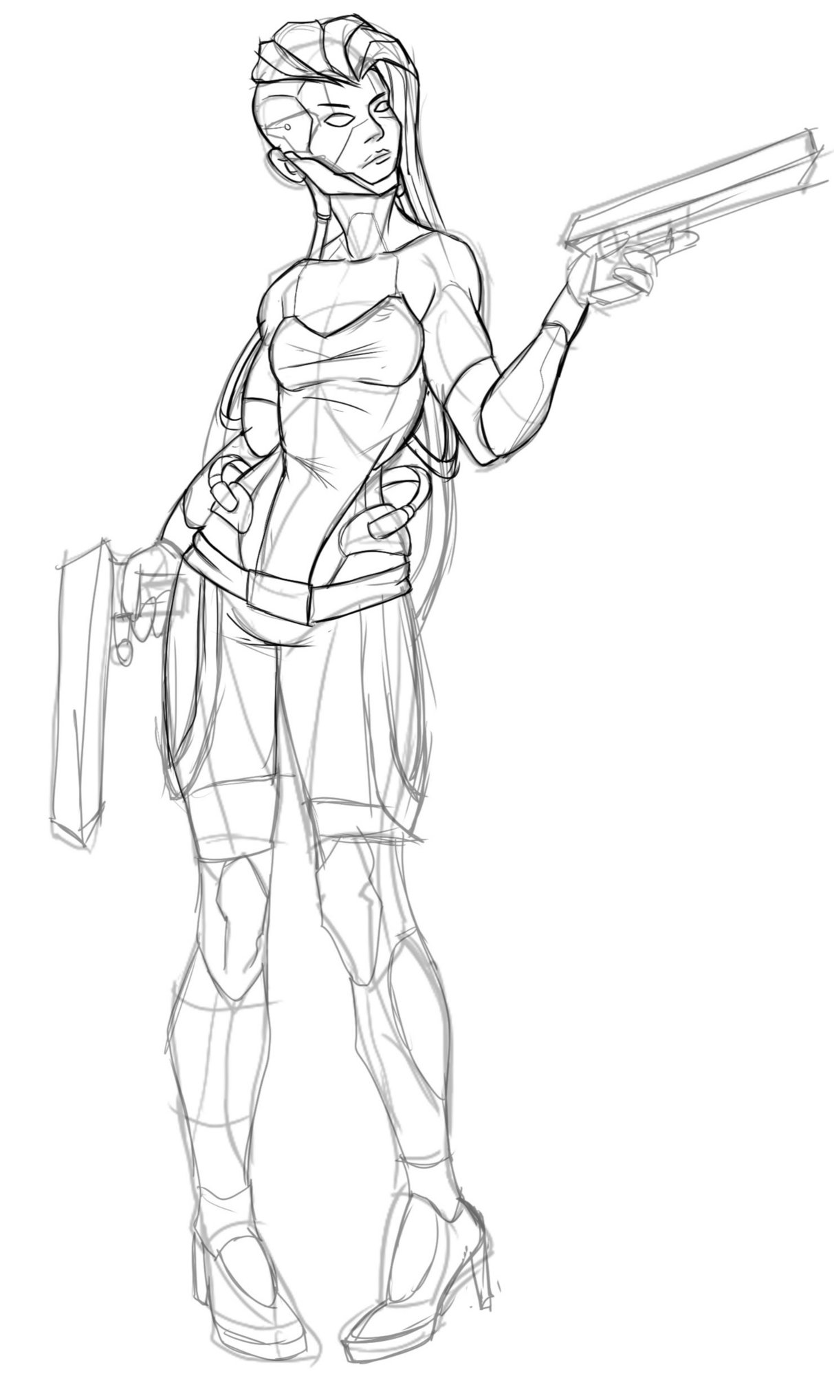 Hello ^^ De mon côté, je vais partir sur au moins deux concept de personnages puis une keyframe pour les mettre en valeurs. C'est l'histoire de 2 sœurs orphelines depuis une guerre de gang, White et Pink, qui vivent dans les badlands et qui sont très soudées. La plus jeune, Pink, est assez joyeuse, elle aime la vie, manger des choses sucrées et est un chouïa innocente. Elle est fan de pakcour et animée d'un grand sentiment de liberté. Elle perds malheureusement une jambe dans un accident de parkour puis tombe gravement malade peu de temps après. L'ainée va alors se rendre à Night City pour trouver de quoi la sauver (une puce d'immortalité par exemple ?) Intelligente, froide et pragmatique, White va gravir les échelons sociaux jusqu'à travailler au sein de la corporation. Femme d'allure diplomate et fortunée le jour, le soir elle remet sa veste en cuir, enfourche sa moto pour retrouver sa sœur et accomplir toutes sortes de sales besognes. Elle n'hésite pas à se salir les mains pour sauver son clan. Voilà quelques tout premier jets pour Pink, la plus jeune.