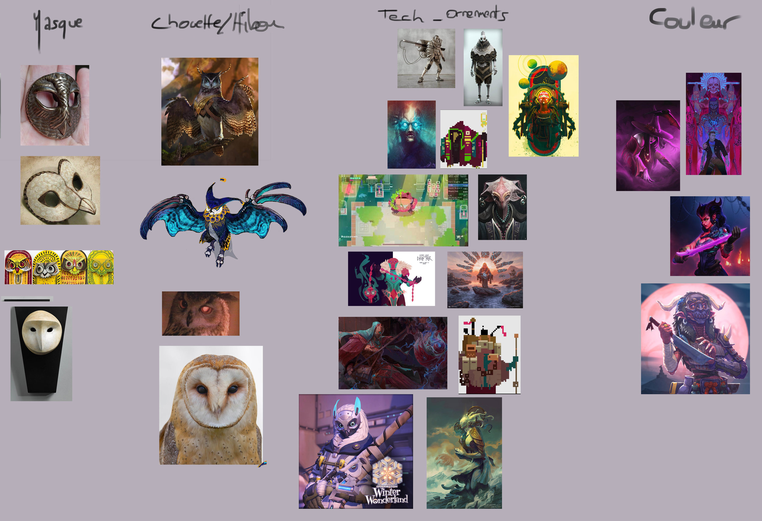Allez, c'est parti pour le 13ème challenge. Bon, il y a tellement de possibilités que c'est compliqué de s'y retrouver. Pour l'heure, j'ai deux différentes idées mais j'ai pas eu le temps de trop les travailler. Noir : Loin d'être le plus simple, mais je pense qu'il y a moyen de faire un truc sympa avec. Pour résumer, ce serait une carte sortilège/capacité. Carte à effets, donc. L'idée serait de faire ressentir la peur et le glauque avec des objets qui ne s'y prêtent pas d'habitude : des peluches. Celles un peu creepy ( qu'on peut retrouver dans les vides grenier, avec des boutons à la place des yeux, tout ça tout ça). Malédiction enfantine/Peluches maudites (ouais faudra faire des recherches pour le nom): Vu que je ne veux pas qu'on confonde avec une carte personnage, j'avais prévu de mettre plusieurs peluches (3) en situation. C'est des recherches basiques assez mal fichues mais au moins ça donne une idée (la 4ème ce sont des têtes de poupées, à la manière de l'image en-dessous) Violet : Parce que passer à côté aurait été dommage. La description de cette faction m'a énormément fait penser à l'univers/la DA d'HyperLightDrifter, ce côté mécanique/organique, assez difficile à mettre dans une case. L'idée est simple : carte personnage; l'Oracle. Ce serait reprendre l'idée d'un oracle (venant de base de la religion et bien plus associé à de la fantasy pure) mais en l'adaptant dans un style plutôt sf-fantasy. Pas besoin de faire le visage de cet Ancien, vu que j'ai en tête de lui faire un masque de chouette D'ailleurs vu que ça restera un personnage de face ( je pense pas faire de décor) ce sera l'occasion de travailler l'accoutrement de l'oracle, en soulignant le côté "noble" et sage de la faction. La tenue aurait 3 éléments importants : Orbe/sphère (faut bien qu'on capte que c'est un oracle, quand même), Couvre-chef et masque Voilà. Bon c'est pas les recherches les plus propres ou lisibles, mais ça s'améliorera. J'pensais plus partir sur la carte violette dans un premier temps.