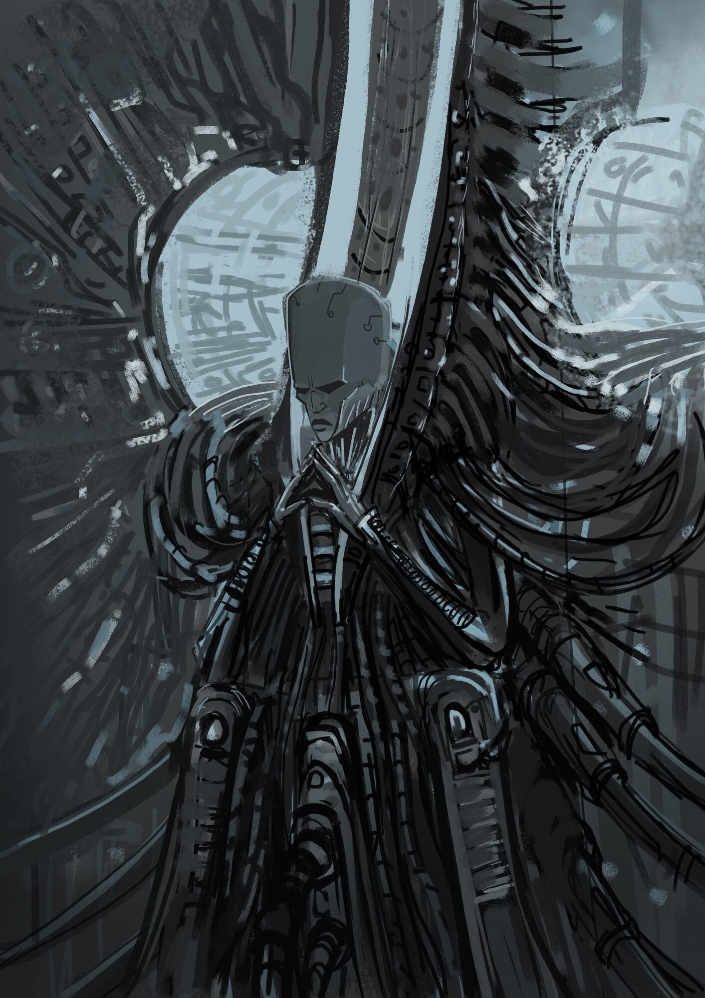Tellement content du retour de la SF dans nos vies! Alors voilà mes première recherche pour le vaisseau des héros, et le sage de fetprox, avec quelques étapes de recherches, inspiration, Giger bien sur, vu le brief, et au aussi madame web dans les vieux spiderman et aussi un peut de megamind