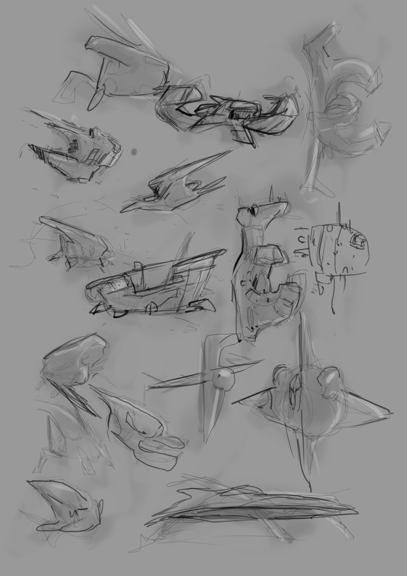 Bonjour, Comme d'habitude le thème me plaît beaucoup donc je me lance pour participer à ce nouveau challenge ! 🙂 Depuis ma participation au dernier challenge, j'ai commencé à me former à Blender et j'ai choisi comme sujet "Le vaisseau éclaireur utilisé par les héros" pour pousser un peu mon apprentissage. Je vous mets en vrac mes croquis de recherche pour le design du vaisseau pour avoir vos avis :