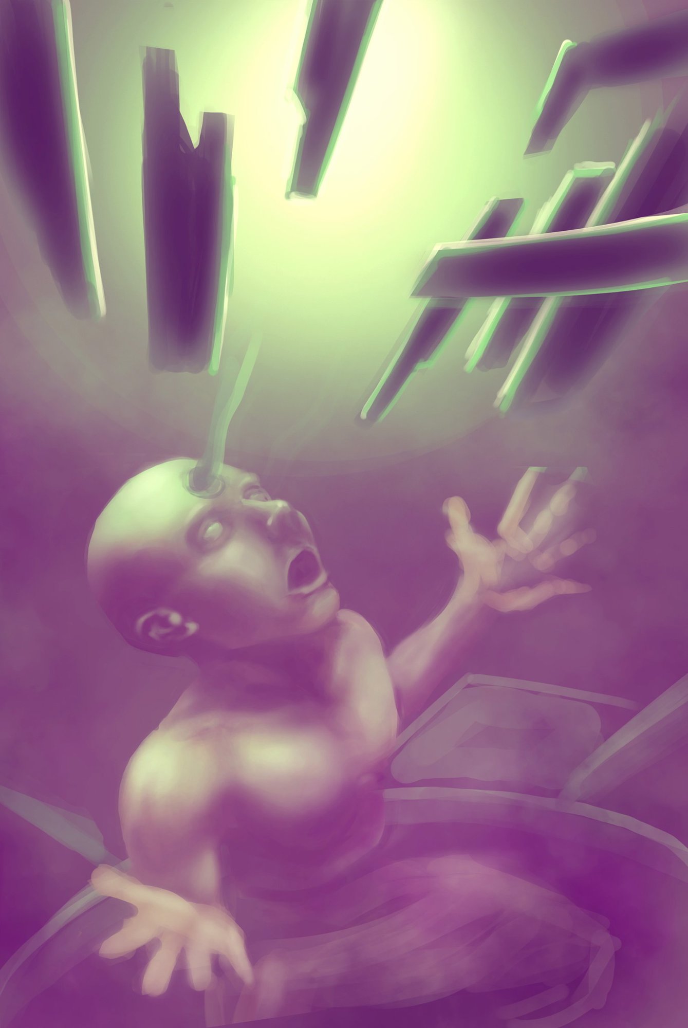 Ma première participation pour le concours #13 ! Domaine noir - carte de sort - Le Baptême de sang Voici l'évolution de mon paint ! J'ai mis vite fais les couleurs pour voir ce que ça donne. Vous en pensez quoi ? C'est pas du tout fini hein ?! je vais peut être même complètement changer les deux grandes statuts avec l'auréole cassée, diminuer la grosse tête pour que le reflet fasse des cornes qui sortent de la tête du mec allongé dans le sang... Dsl c'est un peut glauque ^^'