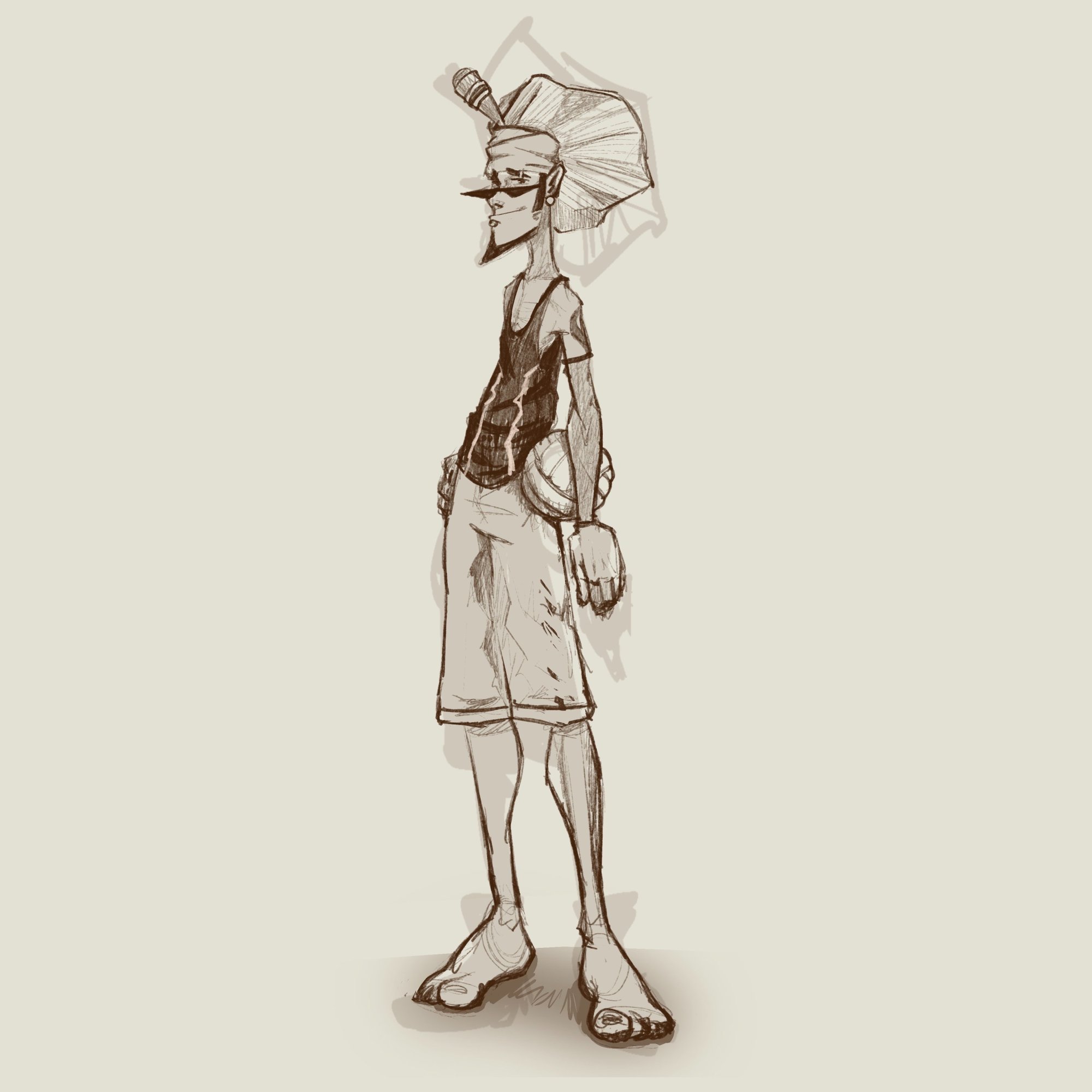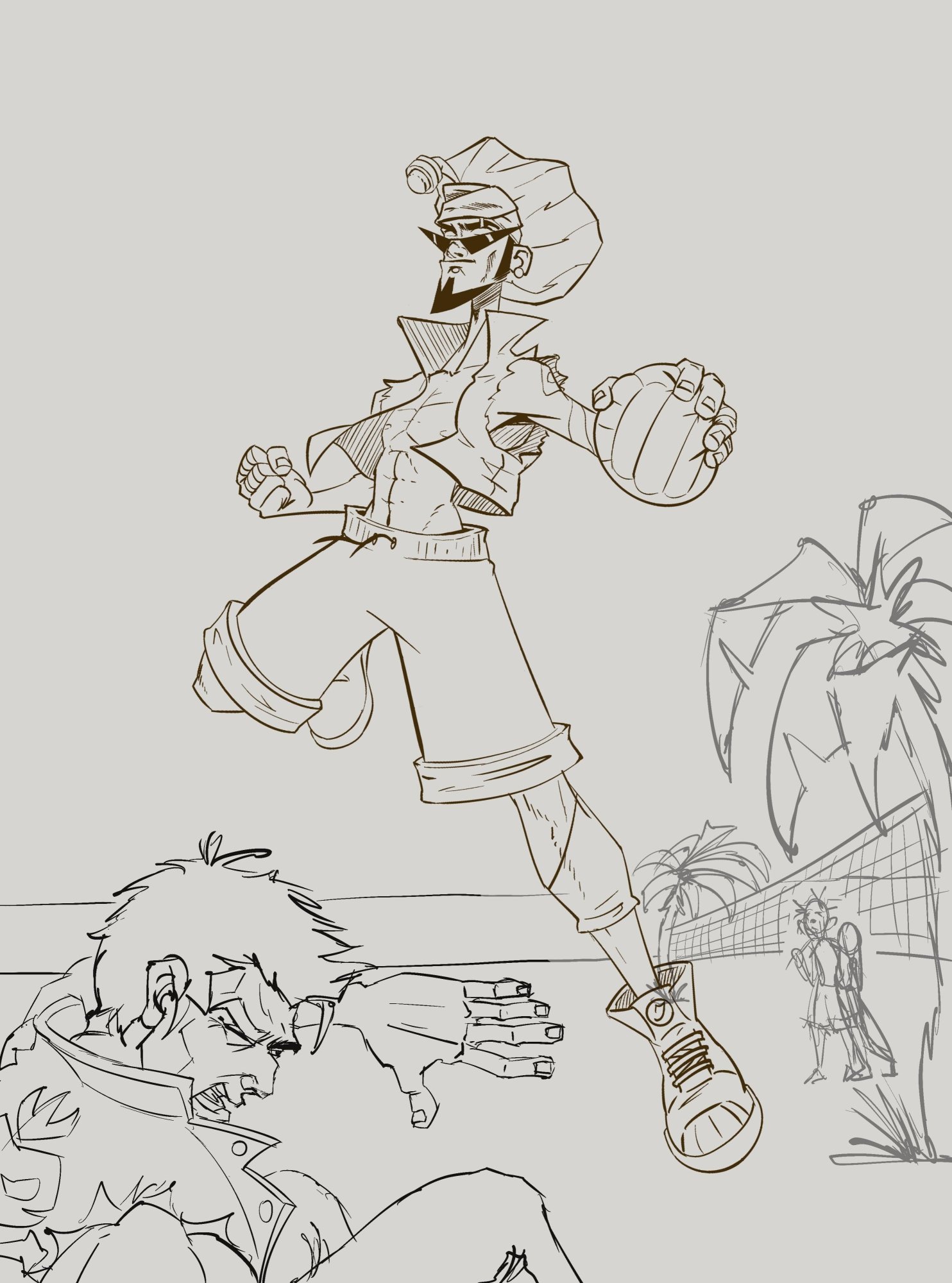 Bonjour, Voici la progression de mon challenge. Bien qu'ayant débuté sur papier, j'ai très vite switch sur iPad et Procreate avec lequel j'ai entièrement réaliser mon illustration. Dont voici les différentes étapes... https://www.youtube.com/watch?v=ig5i5yG7Xgs&ab_channel=Kinematiks https://www.youtube.com/watch?v=9LrFXIlY8WM&ab_channel=Kinematiks https://www.youtube.com/watch?v=_4-soLZWTIc&ab_channel=Kinematiks Stan Pyke - Colérique et Lumineux. Stan est un jeune homme élevé par son grand frère, Doyle. Leurs parents, venus de Jamaïque, ont disparu prématurément, ne leur laissant que de vagues souvenirs. Au fil des années, les mauvaises fréquentations de Doyle finissent par le corrompre. À peine âgé de 21 ans, Stan se retrouve livré à lui-même, errant dans les rues de Los Angeles. Sa seule échappatoire est la plage de Venice Beach, où il se lie d'amitié avec quasiment tout le monde. Finalement, il trouve un emploi dans un bar à cocktails prospère, et sa vie semble enfin s'équilibrer, même s'il a parfois du mal à payer son loyer. Ses amis arrivent occasionnellement à lui venir en aide. Après une journée de travail épuisante, Stan rejoint un groupe d'amis sur la plage pour une partie de volley, comme il en a l'habitude. Soudain, le ballon est maladroitement dévié et emporté par une rafale de vent extraordinaire, disparaissant sous l'emblématique jetée de Santa Monica, où la fête bat son plein. Toujours prêt pour une course, Stan se dirige rapidement vers le ballon flottant sur l'eau. Au moment où sa main touche le ballon, un éclair le frappe de plein fouet ! Les secours arrivent rapidement, mais Stan est inconscient, le ballon ayant littéralement explosé. Par chance, il ne conserve qu'une énorme cicatrice sur son bras gauche. Après quelques jours passés à l'hôpital, Stan se rend compte qu'il ne peut évidemment pas assumer les coûts des soins locaux. Chancelant, il regagne son appartement. Ainsi se présente notre héros, marqué par la foudre. Désormais doté d'un pouvoir extraordinaire, il est capable de matérialiser des ballons de volley remplis d'énergie électrique ! Grâce à cette puissance, il pourra enfin percer le mystère entourant la disparition de son frère et combattre le crime à Los Angeles !