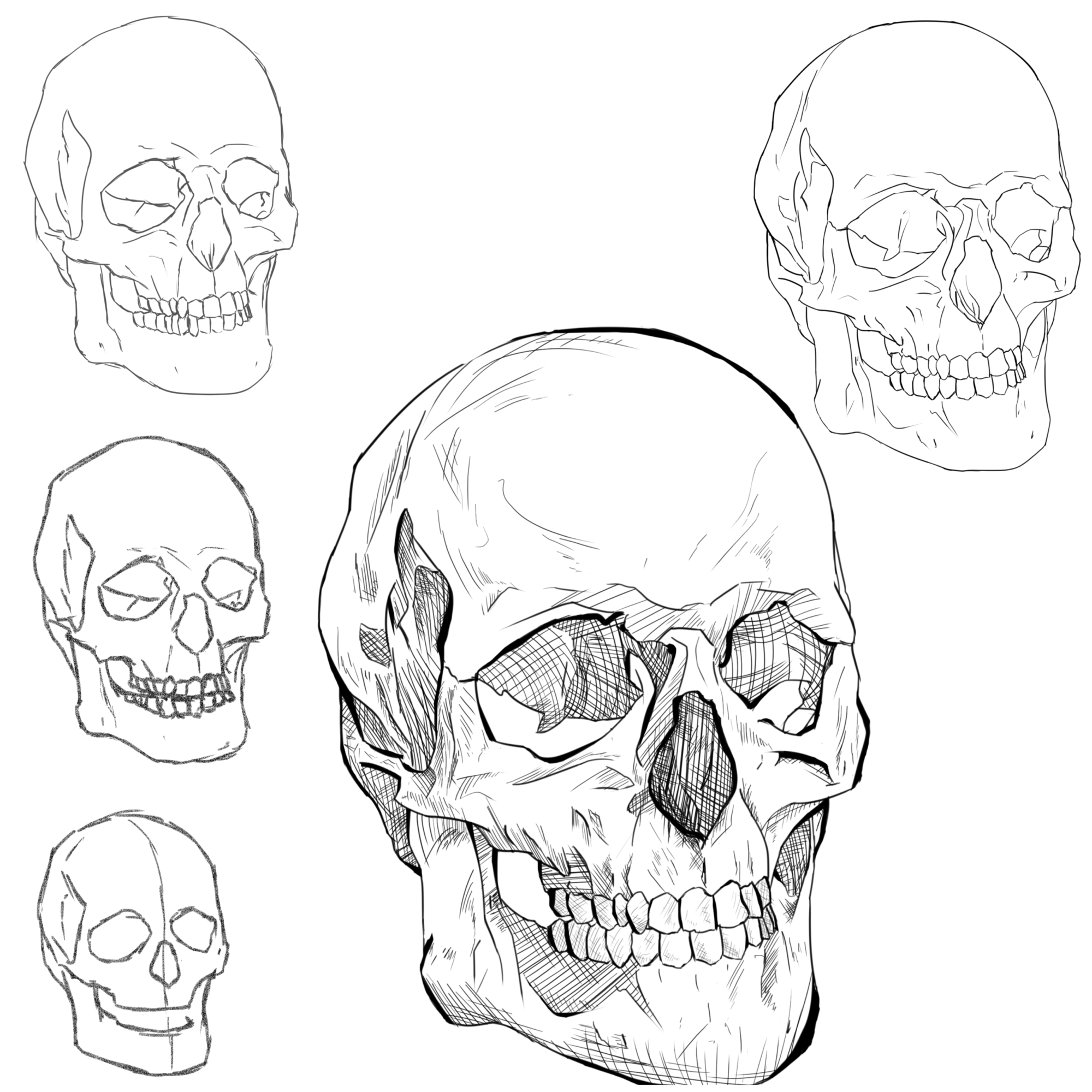 Bonjour à tous et à toutes, Voilà le début du chp 4 pour le croquis du crâne. Je me suis fixé comme limite d'atteindre le résultat final en 30 minutes pas une de plus et donc voilà le résultat. j'ai aussi enregistré chaque étape du croquis. au et j'aime les rendu un peu crunchy, c'est pourquoi j'ai certaines lignes très épaisses, c'est une véritable intention. A vous stylets.