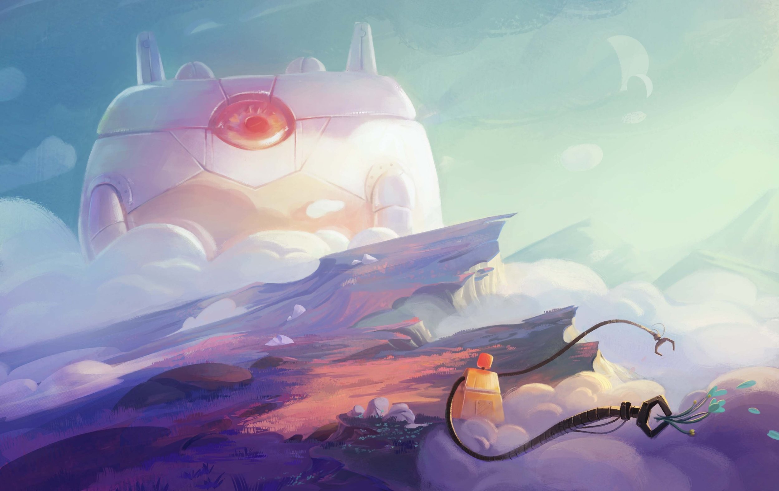 Hello ! Je viens me frotter à vos critiques et vos conseils (si vous le voulez bien). N'ayez pas peur d'appuyer là où ça fait mal ! Non pas que j'apprécie qu'on démonte mes illu ahah mais il faut bien passer par là pour progresser alors... lâchez vous x) J'ai l'impression que mon illu est désiquilibrée... vous me direz ce que vous en pensez. je ne sais pas si c'est ce vide à droite ou autre. J'ai aussi besoin de vos lumières pour une question que je me suis posée en faisant ce dp : Quand on veut mettre en avant deux éléments dans l'illu (ici le robot géant et le plus betit robot, enfin surtout sa mains qui tient la fleur), comment fait-on pour ne pas détailler de trop ? Là j'ai détaillé ,du coup, depuis la main du petit robot jusqu'au gros robot. Mais est-ce que ce serait peut être plus judicieux de choisir un seul point focal ? est dans ce cas, lequel dois-je prendre ? je ne sais pas si ma question est bien claire.... Je vous remercie d'avance 🙂 -