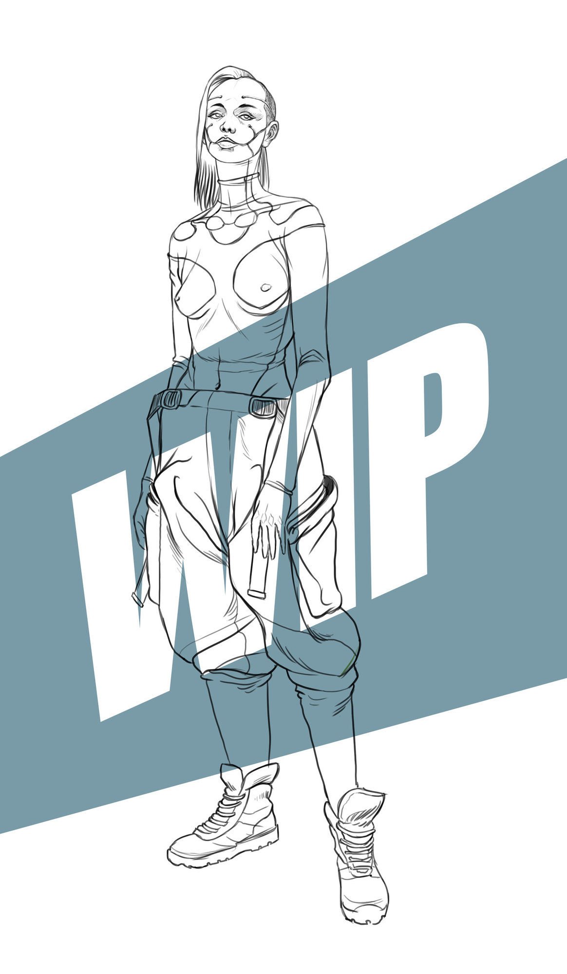 Salut à tous, je vais profiter de ce challenge pour essayer de me remettre à faire quelques trucs persos, j'ai l'impression de ne rien avoir à montrer dans mon portfolio depuis 2013 où j'avais bossé dessus. J'ai commencé par rassembler quelques référence très large, juste pour titiller un peu l'imagination, et fait quelques sketch. J'ai choisit celui qui me semblait avoir le plus de potentiel pour faire un personnage intéressant, une fille un peu chubby, gangsta, avec un gettho blaster tellement massif qu'il justifie ses jambe augmentée. J'ai imaginé que la personnalisation du joueur pourrait permettre de créer un personnage similaire hehe, donc je lui ai donné le look du personnage du joueur de CP2077. J'espère que les steps peuvent être intéressant pour certains, par exemple partir de photos (opacité 10%) pour dessiner un personnage en pose réaliste sans avoir à trop penser à l'anatomie, et plus au design. Ensuite vérifier l'anatomie sous les vêtement en dessinant un squelette. Vérifier la perspective au moment du clean du lineart, sur les objet en perspective comme les armes ect ... En bonus je met ma brush favorite du moment pour dessiner, super polivalente pour faire du croquis léger ou plus définit, de l'ombrage, des lignes droite ect.. sans changer de brush. Next step, couleur, background et lighting... dessin_crayon_clean.tpl