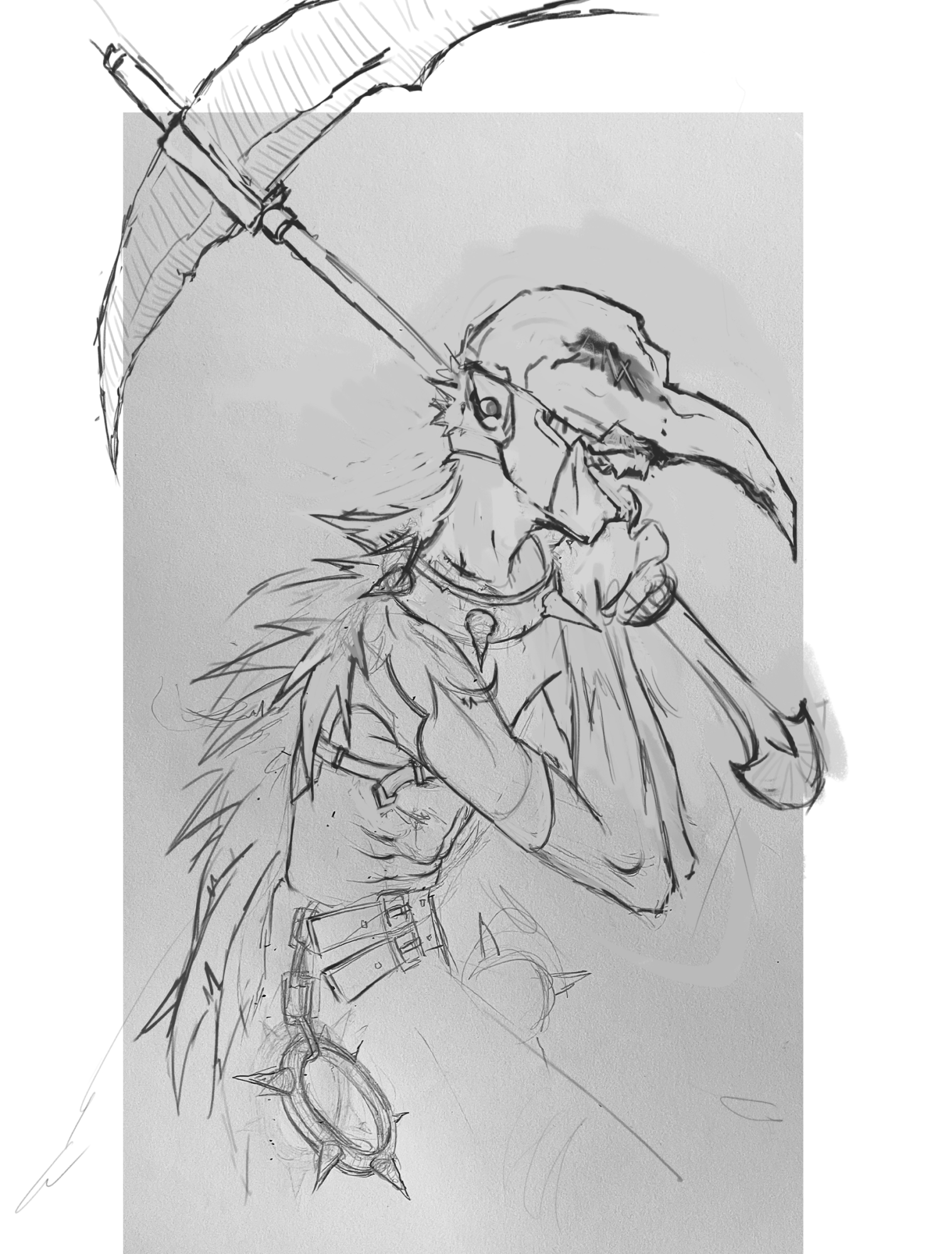 Comme beaucoup je me lance dans le challenge, toujours très tentant. Ayant un travail, je n'ai pas énormément de temps à y consacrer malheureusement, mais scruter vos Wip donne de la motivation ! Alors j'ai commencé quelque chose, voici un premier aperçu du super vilain que je vais illustrer, mais trouvant l'image un peu faible, disons que c'est juste un premier croquis. J'hésite à le continuer. Les mots choisis sont "Dérangé" et "Piquant". Je mettrais mes avancements ici