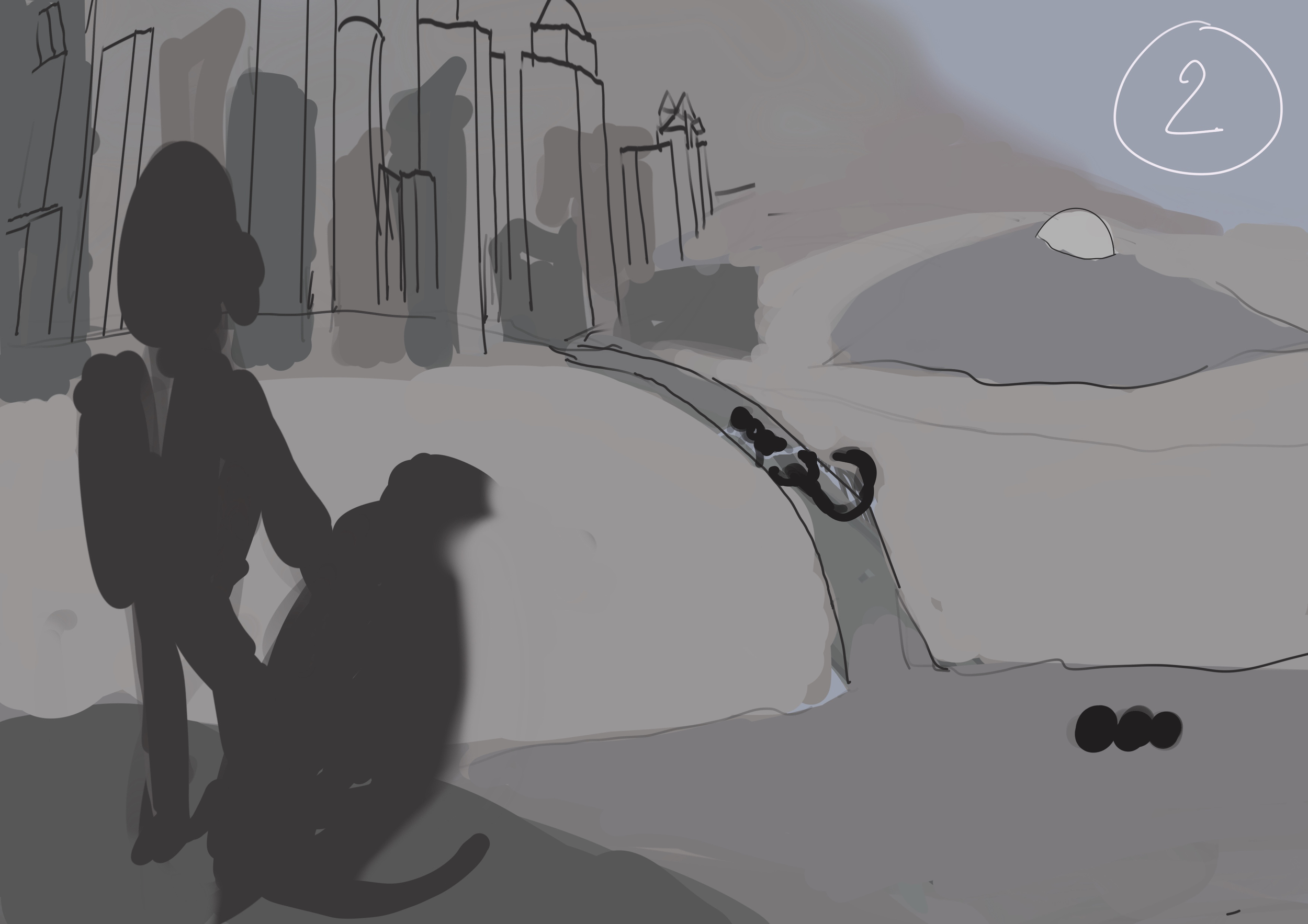 Bonjour, Bonsoir ! C'est ma première participation à un challenge d'illustration. J'avoue que j'ai un petit stress, mais je me suis bien amusé et j'espère que le résultat vous intéressera au moins un peu. Vous trouverez ici les différentes étapes de la conception de ma participation. Je commence par les recherches de compos que j'ai réalisée pour le challenge. J'ai longtemps hésité entre Lumière et Ténèbres, pour finalement me concentrer sur le second camp afin de sortir de ma zone de confort. J'ai rapidement mis de côté ma première idée qui était de mettre en scène une confrontation pour davantage me concentrer sur mon sujet.