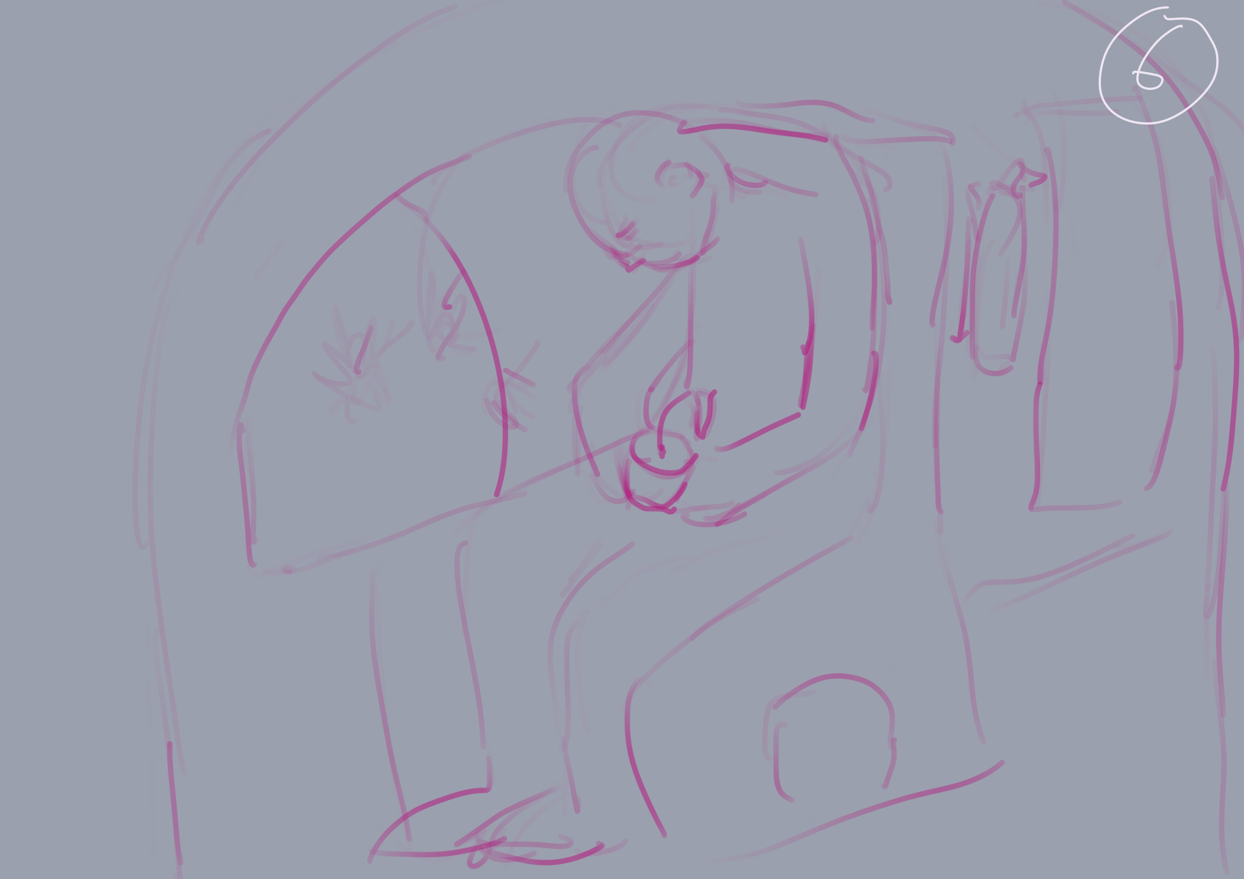 Rebonjour! Voici les premiers jets pour ma seconde participation au Challenge 🙂 J'ai commencé par une recherche de valeurs assez rapide. J'avais une petite idée en tête et je voulais surtout la noter avant de pouvoir y revenir. Pas de croquis au préalable, et je n'ai pas non plus utilisé de références pour cette illustration. Ensuite j'ai commencé à expérimenter un peu avec les couleurs (j'avais déjà une palette relativement précise en tête). Seulement après l'étape de la couleur, j'ai commencé à préciser un peu mon idée. Le croquis a encore beaucoup de défaut (la posture du personnage est déséquilibrée, les cages en arrière plan ne sont pas du tout dans la bonne perspective etc etc...) mais je ne le remarquerai que plus tard suite à des retours très pertinents! Et hop un (gros) GIF de quelques étapes jusqu'à l'état actuel du projet 🙂