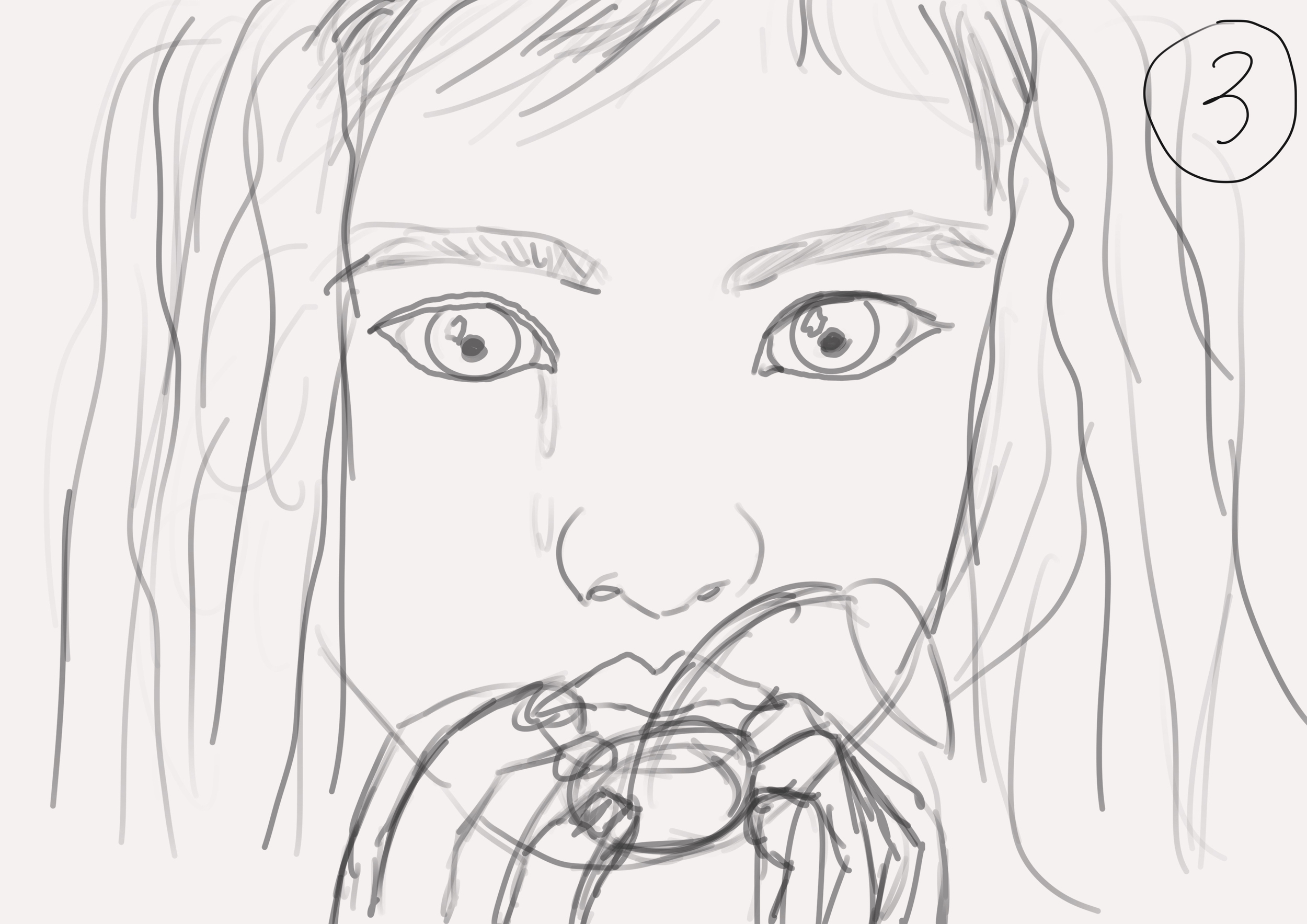 Il attends patiemment que vous vous en dormiez avant de les lâcher, vos peurs, vos tourments... Et attention à ne pas essayer de ne le contourner à l'aide de potions, d'herbes ou de médicaments, peu importe le sort, quand il vous retrouvera, il vous pouchassera et vous dévorera. Je jure ce soleil je le hais autant qu'il m'inspire ! Il s'appelera Solie parce que c'est mignon ahaha ! Dans tes dents créature cauchemardesque ! Enfin bon trêve de plaisanterie ! J'ai plusieurs idées pour le challenge mais on va commencer avec ce bon vieux Solie. Je dois avouer hésiter pas mal sur comment le représenter... le masque relevé ? En mode berger avec des tourments à garder ? La montre à gousset représentant son attente de l'endormissement et en même temps ce coté fixer le spectateur, comme si les tourments attendaient son feu vert pour lui sauter à la gorge ! J'ai oublié de représenter les quelques filer de baves qui coule sur le dernier test. Vous avez des pistes de compo, une préférence pour une de ses représentations ?- 3 réponses