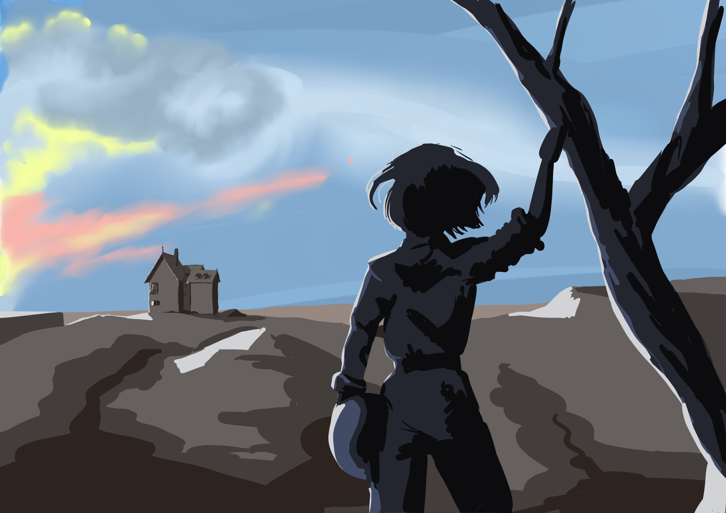 chapitre O : exercice : dessin d'imagination. J'ai essayé, j'ai galéré, j'ai fini par en avoir marre. Alors je me suis consolée dans les nuages... Parce que c'est cool les nuages...
