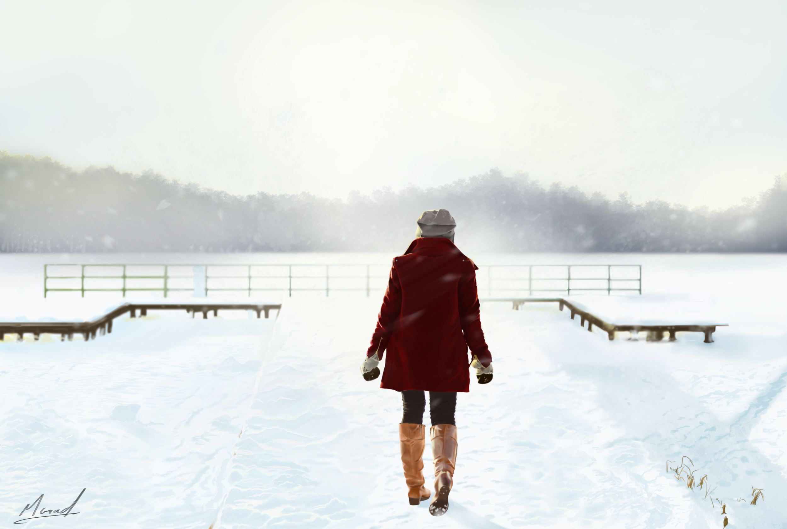 Bonsoir, Je viens de finir cette exercice qui ma foi est très intéressant, et est une bonne initiation pour commencer le digital painting. Alors j'ai kiffé faire le personnage j'ai vraiment pris mon temps, je trouvais les couleurs du manteau très intéressante en passant des couleurs froides au couleurs chaudes. Le petit soucis que j'ai eu est le travail sur la neige, je me doute qu'il dois existé des techniques pour moins perdre de temps, j'ai donc utilisé l'outil tampon qui m'a carry. J'ai hâte de lire vos retours ! Bonne soirée l'équipe !