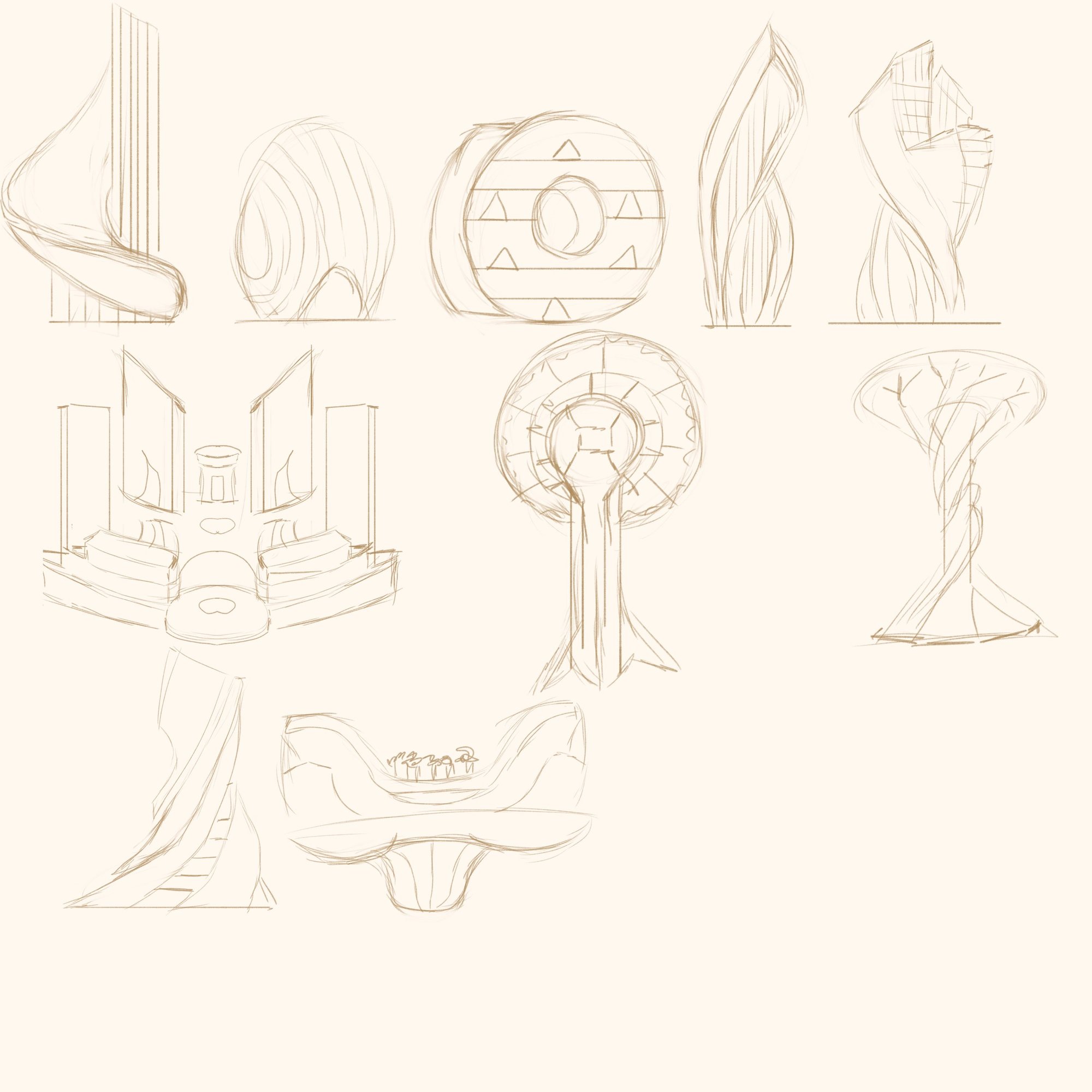 Bonjour ! Voici mon travail en cours pour le challenge 14. J'ai choisi pour la première illustration le Delta. Je suis assez fière de moi car j'ai commencé il n'y a pas si longtemps et j'ai pu voir mes progrès et ce sur quoi je dois encore travailler 🙂 Donc voici le Delta, ville sur pilotis accessible en passant par des plateformes et en montant dans une nacelle. C'est une petite ville idyllique face à un paysage dévasté. La ville est composée de plusieurs îlots comme celui-ci. Je pensais en représenter plusieurs petits derrière de manière plus abstraite (ellipses sur la mer pour le moment) mais j'ai peur que cela fasse trop chargé ...