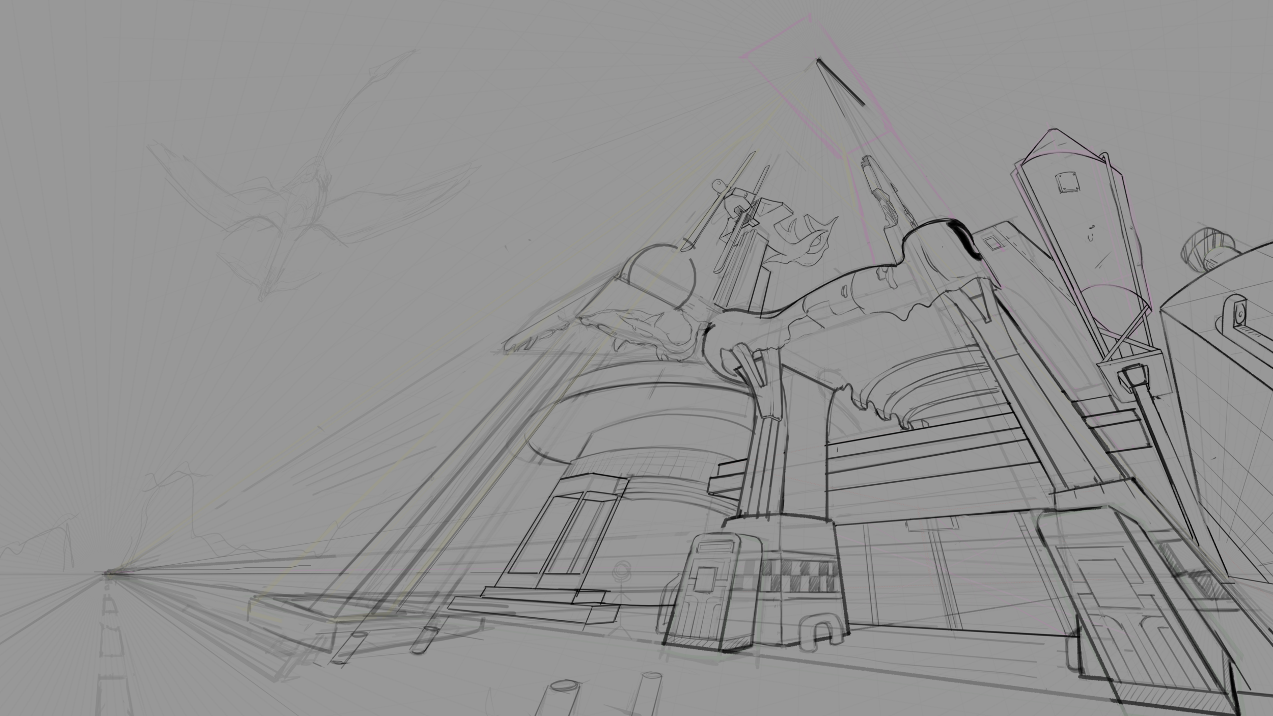 Ayoo, j'espère que vous œuvrez tous en cette période proche de noël ! Pour un premier poste, j'aimerais vous partager ma progression sur un exercice 3D qui consiste à reproduire une image 2D uniquement. Pour la référence, j'ai choisi une scène de Paris peint par Sylvain Sarrailh. C'est un concept artiste que j'affectionne beaucoup pour sa palette de couleur et sa touche toon. Vous pouvez le retrouver sur ArtStation. Je posterai chaque semaine jusqu'au rendu sur ce poste. N'hésitez pas à noter votre aperçu, conseils, erreur ou même à m'encourager en commentaire 😁 Pour l'instant j'en suis qu'au gabarit. Je ne sais pas si j'irais jusqu'à faire les textures...