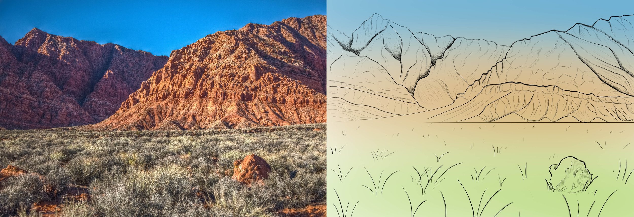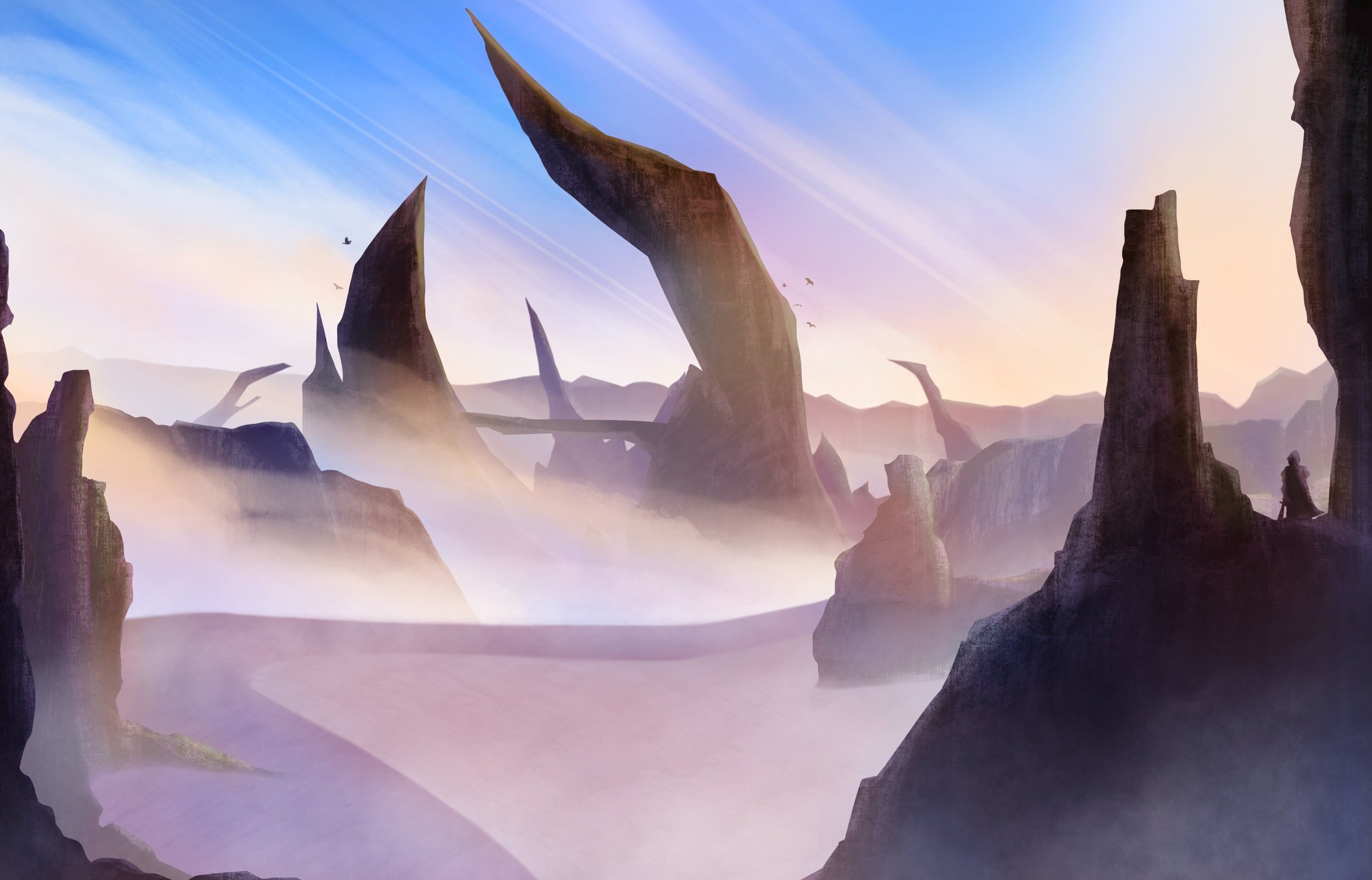 Bonjour tout le monde ! Je suis très contente de commencer ce programme. 😊 Pour le chapitre 0, voici mon DP, inspiré de paysage photographique tels que le désert, le levé du soleil et les endroits montagneux que j’ai voulu rendre un peu imaginaire, et qu'il fasse ressentir une petite sensation de peur et de mystère. J'ai beaucoup d'idées, mais je n'arrive pas toujours à bien les représenter… J'espère m’améliorer cette année ! A très vite dans le prochain chapitre et merci d'avance pour vos retour et conseils. 😀 -
