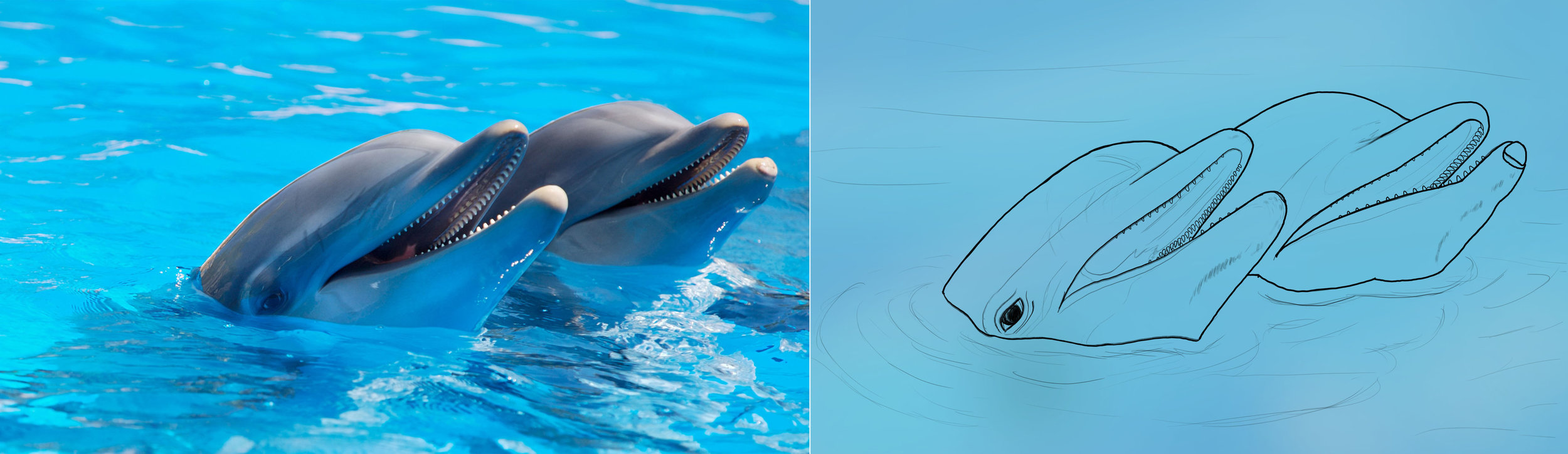 Hello les supers profs et salut à tous ceux qui souffrent dans le plaisir du dessin et les autres ! Voilà, je vous partage le résultat du premier exercice sur les croquis d'observation qui m'ont bien fait mal aux yeux pour certains, et d'autres qui se sont fait rapidement ! Pour aider nombreux d'entre vous je vais vous indiquer comment j'ai procédé sans pour autant vous montrer chaque calque (car je ne voudrais pas influencer votre analyse personnelle)afin de vous donner les outils que je juge indispensables (du moins pour ma part) et qui vous aideront grandement dans vos croquis ! Car que ça soit en digital ou en traditionnel, le dessin ce n'est pas qu'un crayon et du papier ! Tu remarqueras que mes cinq croquis auront été choisis pour leurs caractéristiques géométriques et leur composition. Let's go ! CROQUIS 1 Voici le premier croquis que j'ai abordé. C'était le plus simple à faire, du moins pour moi. En effet, on a surtout un dessin d'architecture avec principalement des cubes. Alors pour ça, rien de mieux que la règle ! J'ai d'abord tracé les formes les plus évidentes en utilisant shift pour des tracés parfaitement droits. Ensuite je me suis hâté de donner une forme cohérentes au pont sans chercher la précision. Enfin j'ai commencé à affiner mes tracés et à placer quelques détails comme les fenêtres des gros immeubles. Pour terminer j'ai aiguisé toutes les formes moins carrées et tracé les haubans du pont grâce à l'outil plume et shift. Note : Tu remarqueras que les bâtiments de droites sont bien plus grands que sur ceux de la photo. La faute à un zoom beaucoup trop rapide dans le processus ! CROQUIS 2 Pour le deuxième croquis j'ai décidé d'attaquer ce paysage car je trouvais interessant d'attaquer quelque chose de simple dans son ensemble mais qui demande un travail de la main plus pointu que de simplement tracer des formes géométriquement parfaites. L'avantage des montagnes c'est qu'elle ont une texture qui s'allient parfaitement au tremblement et l'imprécision de la main. Le seul effort ici c'est d'épouser vraiment les courbes proposées par la photo. La main peut trembler, ça ne donnera que plus de réalisme (qui a déjà vu une montagne parfaitement lisse ?). J'ai donc commencé par mettre en disposition les formes principales comme un bon gros bourrin. Ensuite j'ai fait en sorte de donner le volume en plaçant mes arrêtes sombres de sortes à ce que l'on devine le creux par endroit. Enfin j'ai enchainé avec un calque plus propre et commencé les détails de la roches sans chercher à être 100% fidèle à la photo (ou sinon tu en auras pour 100 ans, et je n'ai personnellement pas la conviction de disposer de ce temps.) Note : Tu remarqueras que les volumes ne sont pas forcément les mêmes que ceux de la photo et ce à cause de la même raison qu'avant ! Trop de zoom précipités conduit à perdre une vue d'ensemble. CROQUIS 3 Ah les dauphins ! Quiconque a lu ma présentation sait qu'il était impossible que je ne m'attaque pas à ce dessin ! Mais en dehors de ma passion pour la faune marine, j'ai aimé choisir cette photo pour ses courbes pas si lisses que ça et les petits détails non négligeables à tracer précisément dans ce croquis. D'abord les formes globales, comme d'habitude. Ensuite on ajuste et peaufine le trait. Puis on attaque les dents, l'oeil et son contour. Note : Ici j'ai vite réalisé mon erreur sur le premier dauphin que je n'ai pas forcément reproduite sur le deuxième. J'ai préféré la garder pour montrer l'importance d'un zoom mal utilisé avec un exemple. Mon dauphin de gauche, le pauvre, a des dents pour mâcher de l'herbe et rien d'autre. En plus d'être petites, elles sont trop écartées ou mal alignées (c'est qu'il lui faudrait un appareil à Flipper!) ; alors que le dauphin de droite, même si ses dents ne sont pas encore parfaites, ressemblent à des dents de dauphin. Tout ceci s'explique par le fait que j'ai attaqué les dents du premier avec un zoom décomplexé tandis que le deuxième a eu le privilège d'avoir son petit croquis approximatif avant de placer correctement ses dents puis de zoomer pour aiguiser ces belles canines. CROQUIS 4 Alors celui-là je l'ai bien aimé, surtout qu'il ne m'a pris... qu'une heure ! Je pense que le portrait vient tellement bien s'inscrire dans la continuité des formes plus complexes qu'il me fallait bien m'y soucier. Ici j'ai mis en pratique certaines connaissances déjà acquises par le passé. c'est ce qui m'a fait gagné du temps. Mais sans cela, il est tout à fait possible d'arriver au même résultat ! Sur mon premier calque j'ai posé les bases d'un visage avec la méthode Loomis. En même temps, je me suis occupé de composer correctement mon image pour éviter toute modification qui impacterait le reste de mon tracer (je suis un feignant pour ça). Ensuite je commence à modéliser sur mon second calque son visage. Rien de bien pénible ici. Le final : On précise ses traits ! CROQUIS 5 Enfin, last but not least comme disent nos amis anglophones, cette magnifique jeune femme, euh photo, dans un décors naturel et lumineux. Cette image était parfaite pour combiner tout ce qui a été faits avant en ajoutant une nouveauté, l'arrière plan. Et surtout, on va pas se mentir, je l'aime bien cette petite 👀. Alors ici, bien que ça soit un visage, je n'ai pas vraiment appliqué la méthode Loomis mais : j'ai tracé un vieux mannequin en bois sans me soucier de quoi que ce soit avant de mesurer avec mon oeil les différentes portions de son corps. Ensuite j'ai commencé à placer quelques repères sur son visage pour estimer où avoir les yeux et la bouche (car le nez s'en déduira facilement par la suite). Là ça devient plus compliqué. Je commence à apporter mon trait précis et à réajuster Toutes les courbes et les volumes. Pour ça j'ai énormément utilisé l'outil fluidité. Enfin je commence à tout retracer proprement et à attaquer les pe