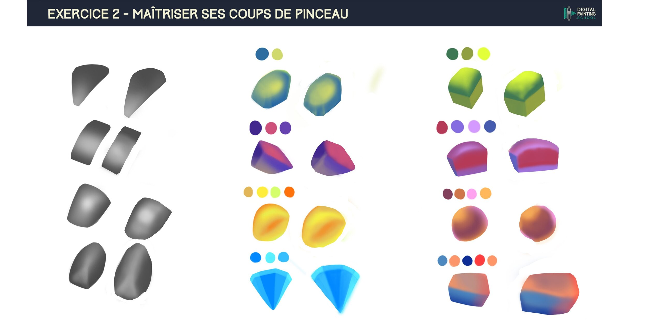 Bonjour les artistes 🙂 J'espère que vous vous portez bien ! Vous trouverez ci-dessous mes exercices du chapitre 2 à propos du croquis en digital painting. Je vous remercie pour le temps que vous consacrerez à la correction de mes exercices 🙂 Exercice 2 : -