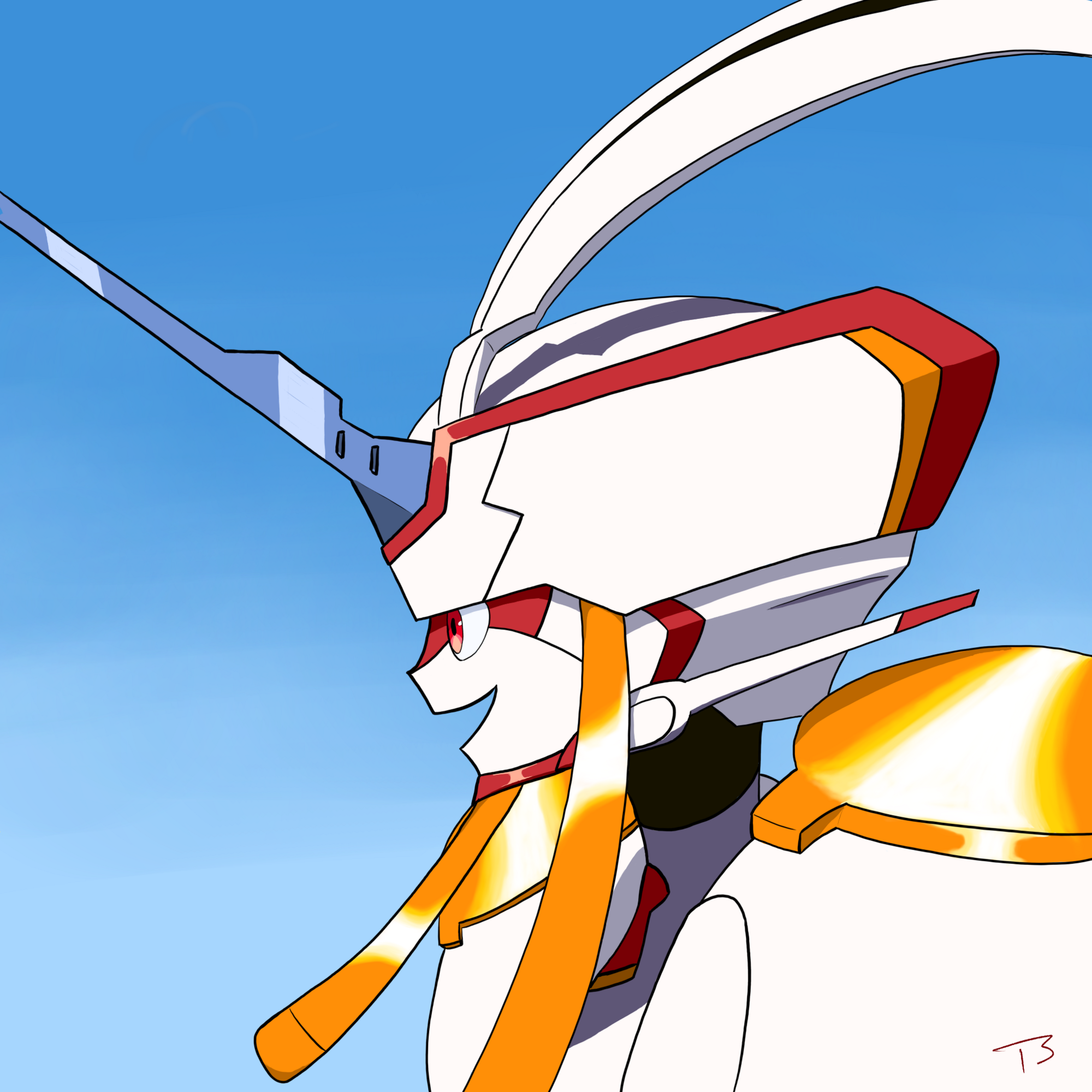 Bonjour à tous ! Allez je me lance dans le postage (postation ? postement ?) de réalisations personnelles, en commençant par un petit artwork basé sur le Mecha STRELIZIA de la série Darling In The FRANXX ; extrait d'un crayonné fait en convention, je voulais un logo discord à la base, mais je le mets un peu partout au final ^^