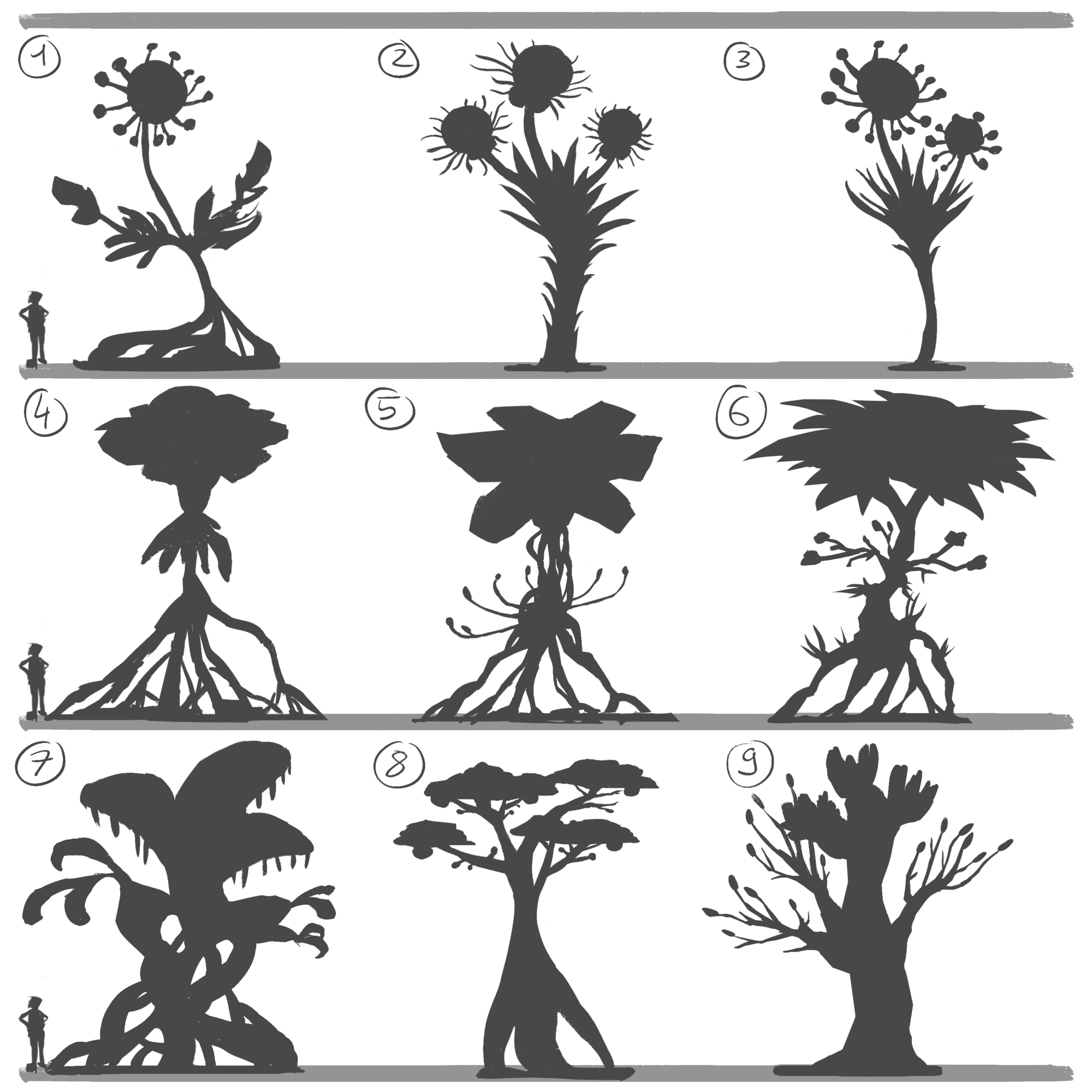 Bonjour à tous ! Plus que 16 jours au moment où j'écris ! Je vois que personne d'autre n'as choisis ce sujet 😞 pas de comparaison possible c'est dommage. Enfin bref voici mon développement du brief : Les Krix sont des plantes hautement intelligentes d’un point de vue biologique, dotées de capteurs chimiques capable de détecter des changements chimiques dans l’air en l’espace de quelques minutes. Elles émettent en permanence des spores pouvant se propager sur l’entièreté de la planète Andromedo-22 permettant une connexion permanente entre toute l’espèce. Ces spores comportent des informations sur la composition chimique local permettant à l’espèce de s’adapté rapidement aux changements biologiques et afin d’optimiser sa croissance et de protéger l’espèce. Lors de l’arrivé des marines sur Andromedo-22, les vaisseaux spatiaux et véhicule terrestre ont émis des polluants inconnus par les Krix activant leur système de défense et produisent des spores ayant pour but d’équilibré l’air, le rendant à nouveau consommable pour les Krix et l’écosystème entier de cette planète. Cependant ces spores libérées produisent des enzymes et composés chimiques décomposant les équipements des marins les rendant vulnérables aux spores cardiotoniques aux humains provoquant des arrêts cardiaques. Anatomie de la plante: - Organe de Reproduction Dioïque, différence notable entre le mâle qui possédent des fleurs aux couleurs vives et la femelle qui ont des structures receptives (étamine / pistile) - Capsules de spore : ces spores peuvent contenir des données génétiques, des signaux chimiques et d'autres informations. Générés en quelques heures ces spores se propagent dans l’air une fois arrivé à maturation et sont transporté dans l’air sur de grandes distances. - Récepteurs Spéciaux : Les Drix ont des organes spéciaux qui agissent comme des récepteurs pour les spores d'information. Une fois les spores réceptionnées, les Drix analysent chimiquement les informations qu'elles contiennent. Cela peut déclencher des réponses spécifiques, comme des ajustements métaboliques ou des changements de comportement. Et voici mes premières idées, merci de me dire ce que vous préférez car j'ai beaucoup de mal à choisir une silouhette, peut être la 1, 6 ou 9 ? Qu'en pensez vous ? IMAGES ENVOYÉES image.png 6.7 mb · Échec de l’envoi Insert ×