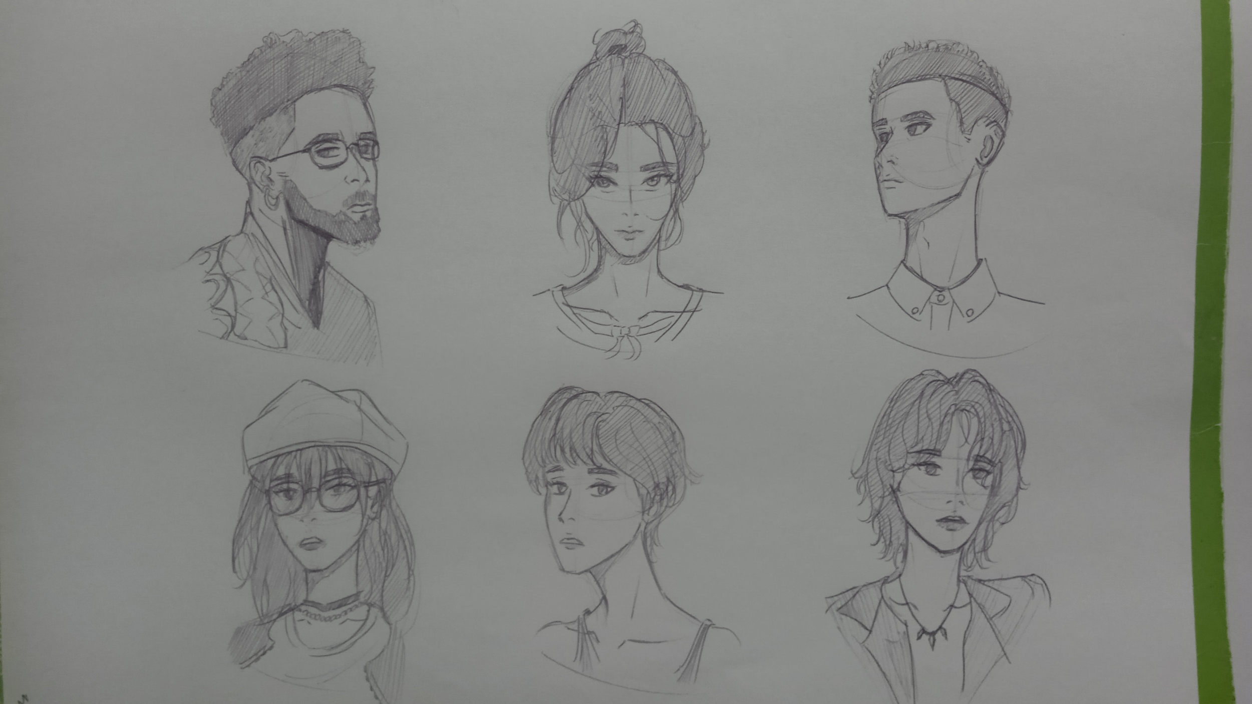 Voila les différentes étapes par lesquelles je suis passé, pour commencer j'ai fait du croquis tradi. histoire d'allez assez vite.