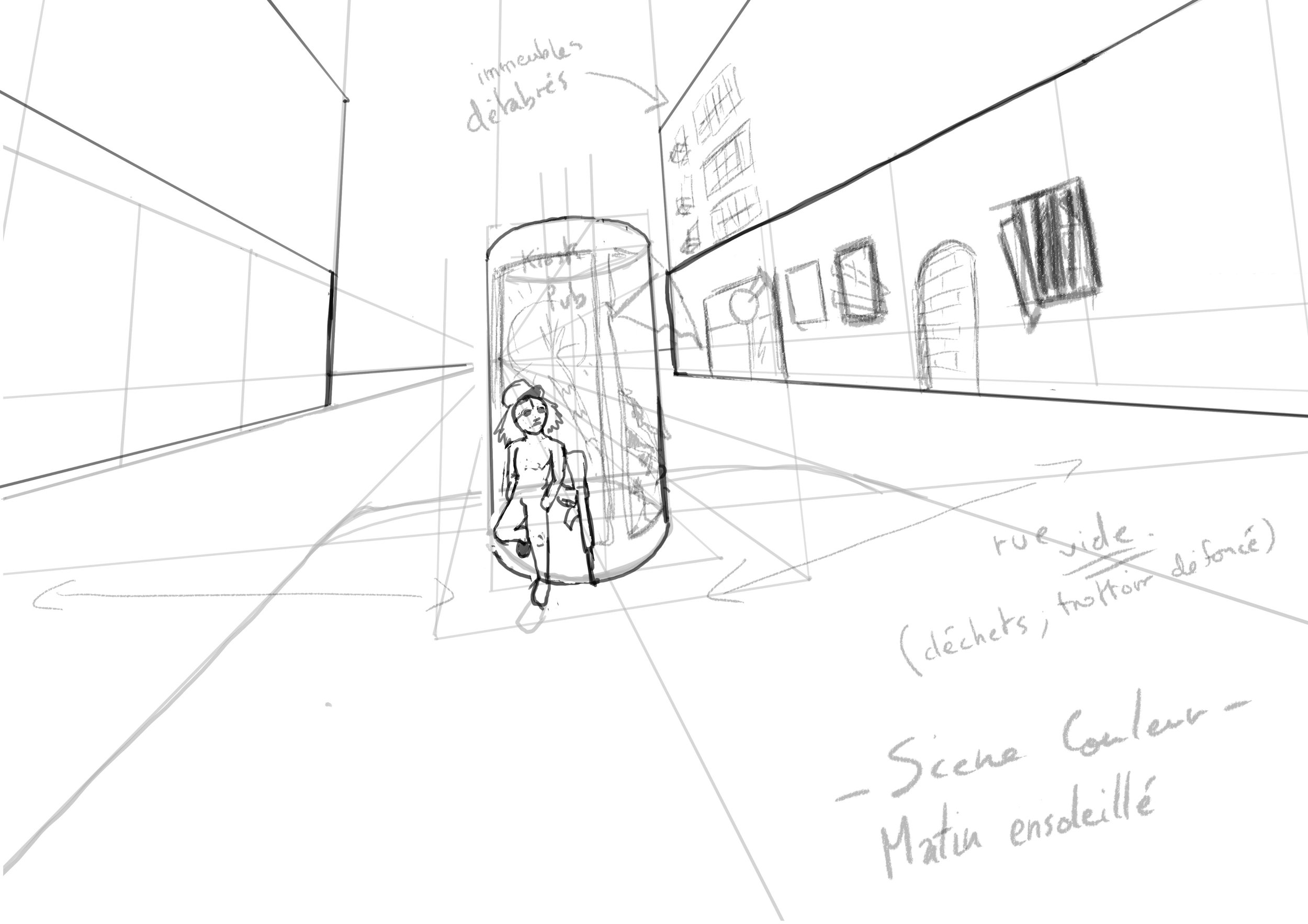 Hello! Je m'entraine à réaliser des environnements et des scènes complètes, j'étais jusqu'ici un peu trop focalisé sur le dessin de personnages. Je posterai ici la progression de deux DP que je réalise en même temps, en lien avec le personnage de "Army Dreamer" retrouvable dans ma galerie (je poste juste un bout là pour avoir un aperçu du perso). Toute critique et conseil sont bienvenus, j'ai beaucoup à apprendre, surtout en terme de corps en perspective haha ( ...les raccourcis... * grinçage de dents * haha O_O) . En tout cas, comme beaucoup d'entre nous, je prends plaisir à me torturer en faisant des choses que je ne sais pas faire *sourire crispé*. La meilleure voie de l'apprentissage *pouce en l'air*.