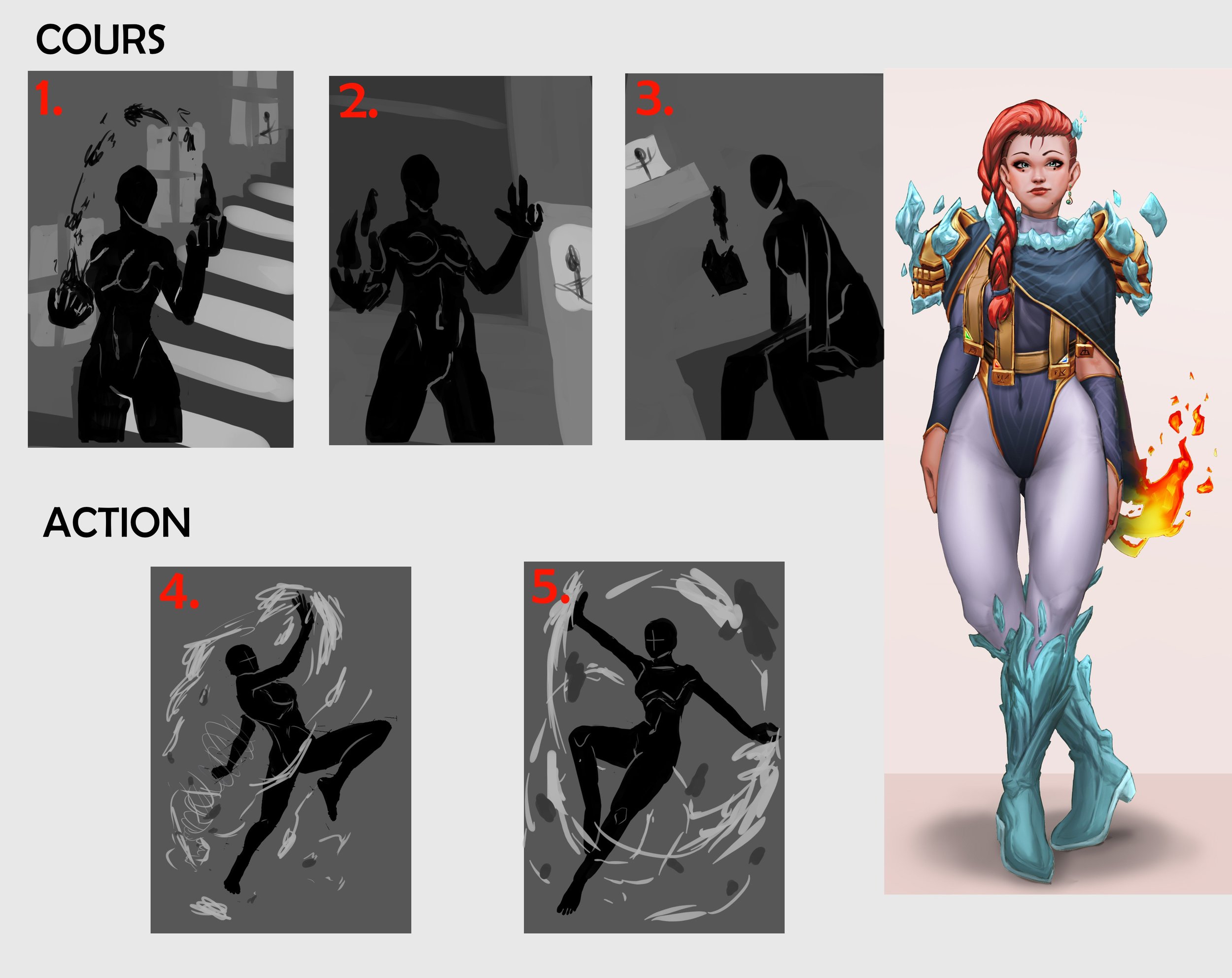 Salut tout le monde, j'ai gribouillé 5 croquis rapides des idées pour mon illustration finale pour le challenge, les 5 me plaisent, et je me vois travailler dessus des heures, mais j'aimerai des avis éclairés pour me guider dans mon choix, vu qu'ils sont très brouillon, j'ajoute une petite description pour chacun afin d'y voir plus clair :