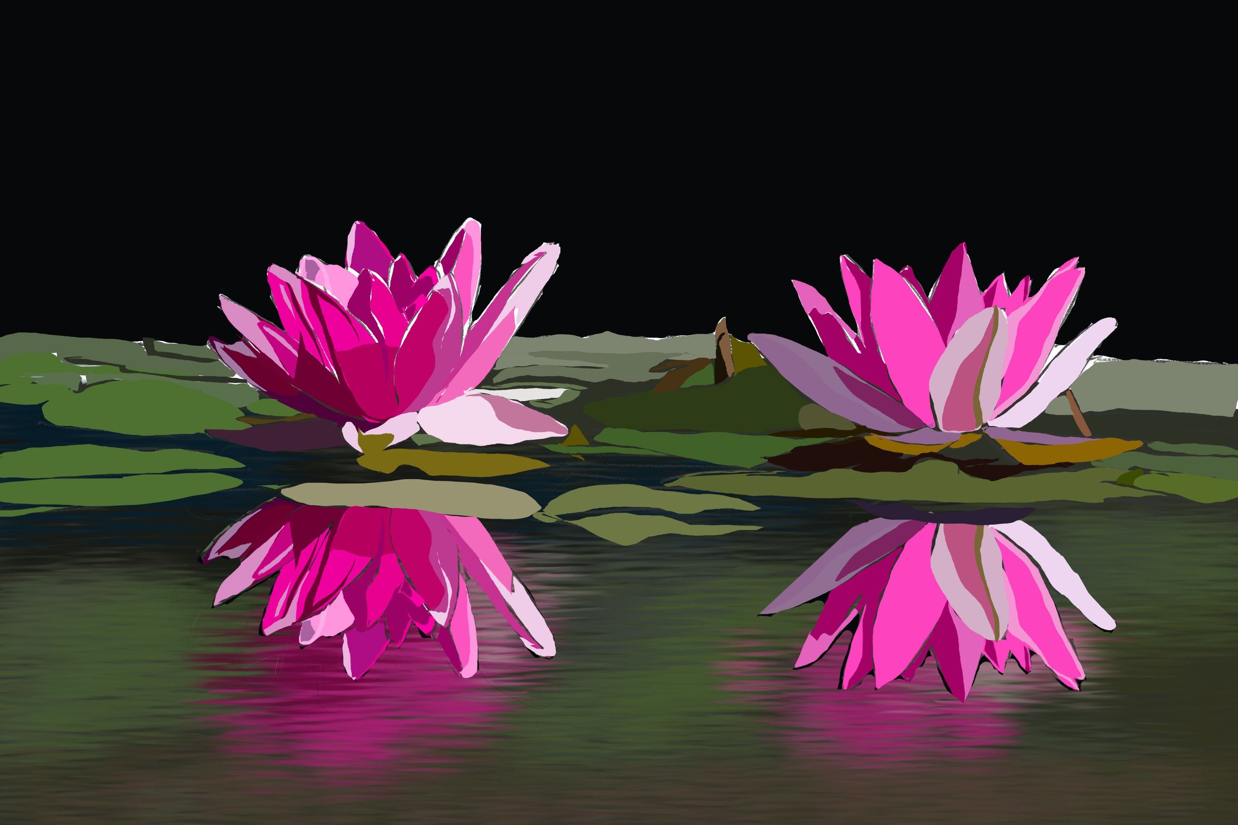 Bonjour, je vous partage des exercices que j'ai fais 🙂 J'attends vos retour avec joie 🙂 Merci à vous ! Suite à aux erreurs que vous m'avez énoncé voici l'exercice 2.5 avec les modifications, j'ai un peux plus joué avec les couleurs en utilisant un brush doux 🙂 Suite à cela j'ai fais l'exercice 3 (la montagne neigeuse, la fleur et le nénuphar) Pour informations j'ai refais plusieurs fois la montagne en essayant d'y rajouter le plus de détail à chaque fois, la fleur je l'ai refais en adoucissant les bords de couleurs. Merci pour les prochains retours ! 🙂
