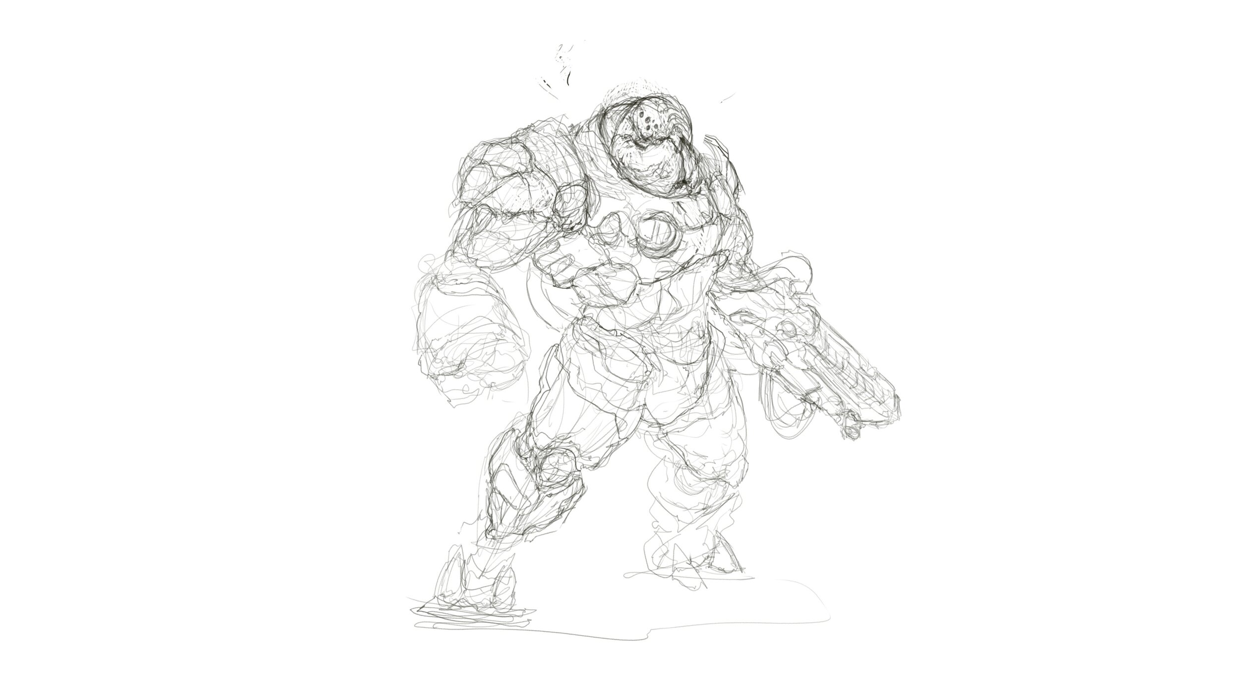 Magnetar 1,399 Posté(e) 5 novembre 2019 Alors, c'est pas vraiment ce à quoi je m'attendais. Comme quoi, le sensations d'images en tête à retraduire, c'est vraiment tendu du slip quand c'est des images qu'on a pas l'habitude de faire. Sur cette même base, je suis passé par beaucoup de stade et de recherches, notamment une plus forte perspective. Mais les raccourcis étant trop présents, (ou ratés) je trouvais que ça nuisait un peu la lisibilité. Je pense continuer dans cette direction. Je suis assez fan du côté anguleux du menton. Je pense que je vais aller en ce sens pour le design global. Une fois le design homogène, je vais attaquer l'éclairage et la coloration de base. *** pfffchiiiit ***- (fumée ninja) - Partager ce message Lien à poster Partager sur d’autres sites More sharing options...