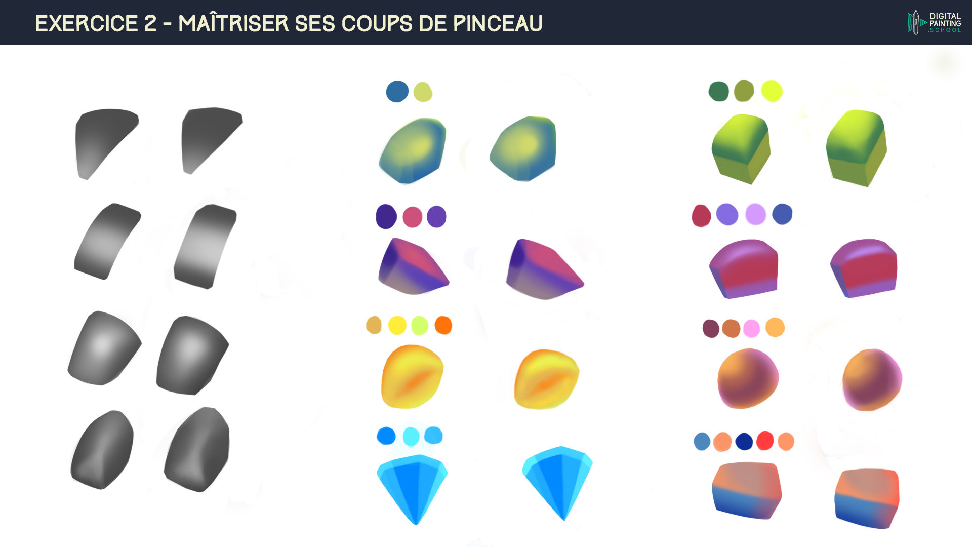 Oichigo 591 Posté(e) 14 octobre 2019 Hey ! Bienvenue dans le programme ! :3 Tu t'es es très bien sorti pour l'exo des formes ! Pour chipoter, il y aurait juste la forme jaune qui mériterais un blending plus doux vers le centre Pour les repères, il me semble que c'est dans affichage > effacer les repères, il y aussi un raccourcis mais je l'ai oublié 😅 Je t'encourage à continuer sur cette si bonne lancée 🙂 Oichigo / Vanessa Carneiro GuedesInstagram : https://www.instagram.com/oichigo.art/Artstation : https://www.artstation.com/oichigo Partager ce message Lien à poster Partager sur d’autres sites More sharing options...
