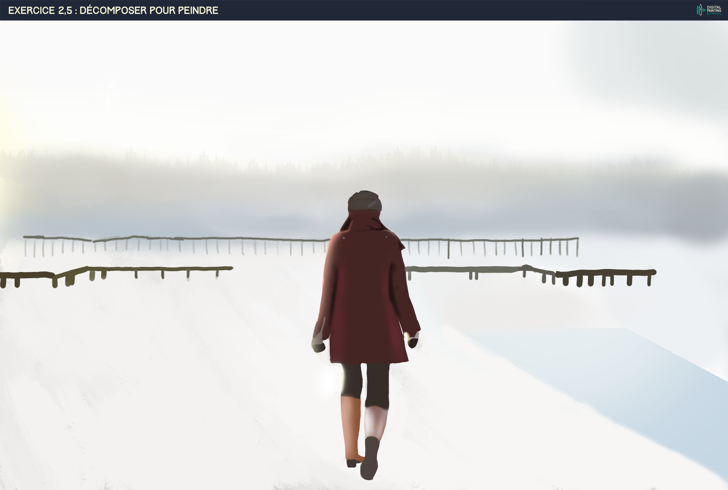 Grimdor 1,505 Posté(e) 15 décembre 2019 Hello et la bienvenue sur ce premier chapitre. C'est pas mal du tout pour ces premiers exercices. Pour ton premier exercice tu manques encore un peu de propreté au niveau de tes bords, et tes dégradés manquent encore un tout petit peu de nuances dans les transitions. Pour t'aider à affiner le tout tu peux jouer avec l'opacité de ta brush :) Concernant ton exercice 2.5 c'est un peu le même soucis, tes bords manquent de netteté pour le moment. La touche shift est chouette pour contraindre la brush sur un axe, tu peux également utiliser le lasso polygonal pour les rambardes si tu préfères. Pour t'aider à avoir des formes plus nettes, je te conseille de regarder la partie sur les masques, mon petit doigt me dit que cela va grandement t'aider à obtenir un rendu plus clean et abouti. Keep it up :) pro : https://www.artstation.com/grimdor fourre-tout : https://www.deviantart.com/grimdor perso : https://www.facebook.com/loic.denoual.3 instagram : https://www.instagram.com/grimdor_denoual_loic/ Partager ce message Lien à poster Partager sur d’autres sites More sharing options...