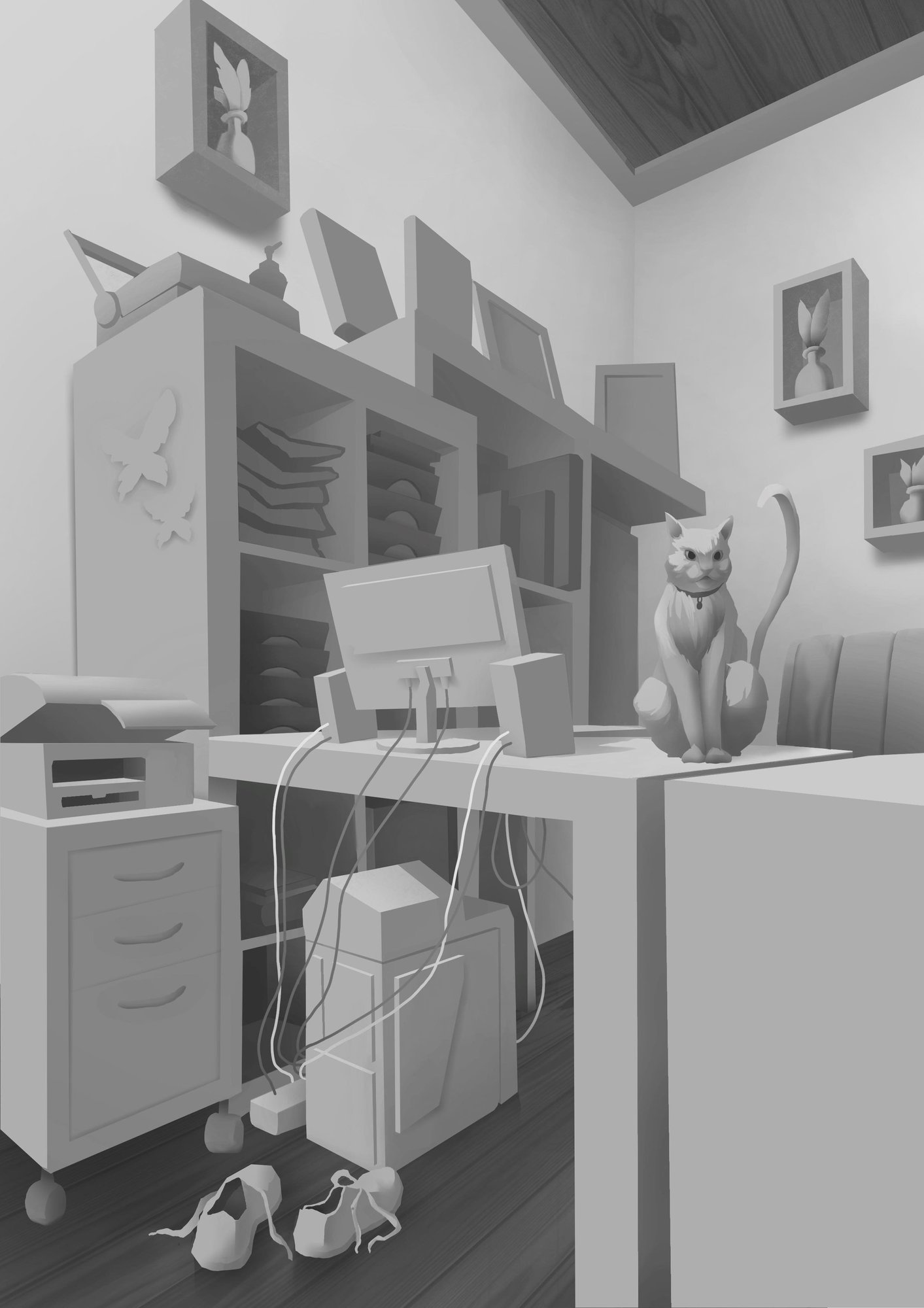 Alzou 459 Posté(e) 6 juin 2022 Hello Tess, Wow j'admire on dirais presque de la 3D. Juste une petite remarque, j'ai l'impression que le cadre accroché au mur le plus proche n'est pas sur le mur, comme si il "volait" au dessus de l'armoire. c'est peut-être l'ombre qui ne va pas , mais je ne suis pas sûre, d'autres personnes arriveront peut-être à identifier l'origine de ma mauvaise interprétation. et peut-être qu'avec la colo, cette impression partira 🙂 Partager ce message Lien à poster Partager sur d’autres sites More sharing options...