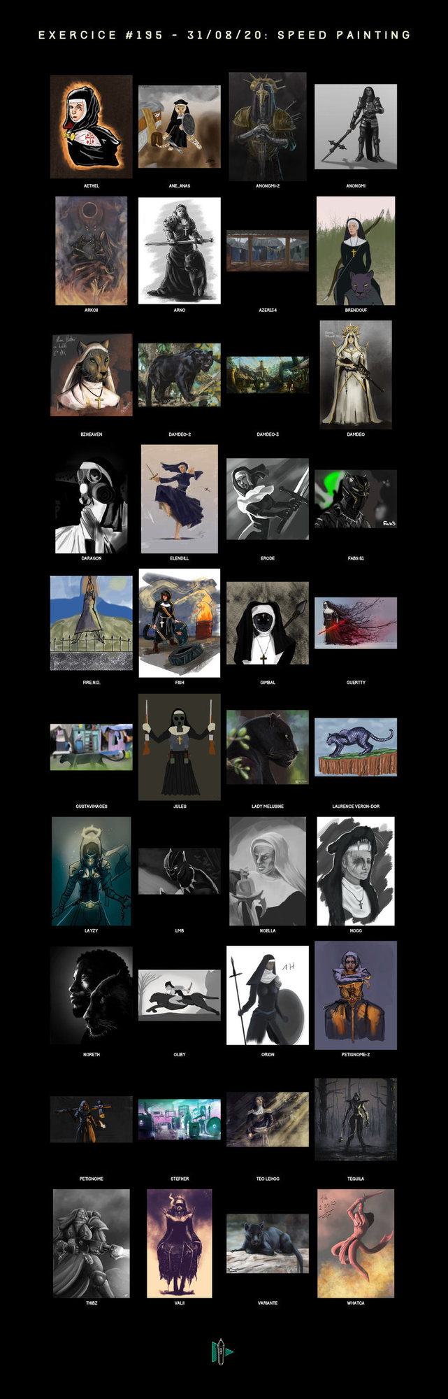 Whatca 218 Posté(e) 6 septembre 2020 Le 9/5/2020 à 12:30 PM, Petignome a dit : Je recommence meme theme en etant un peu plus focus. @Thibz En fait j'ai voulu mettre la masse dans un angle ou on voit le dessous pour caser une croix gravée qui s'imprime dans ce qu'elle tape, comme un tampon :d mais ouais y'a masse de souci dessus, la lumiere passe a travers comme j'ai fait ca assez tard et j'ai manqué de temps pour fixé tout :'< Moi j'vois une holy saint grenade sur la nonne qui me fait penser direct a sacré graal, elle chasse le lapin ? 😛 @Noella Merci huhu, a ce stade la ca se jouerai plus que sur du rendu et des corrections avec un temps infini 😛 Pour ta nonne je crois que je cadrerai plus large juste pour donner du contexte de l'histoire et pas couper dans la main et l'epee. Belle utilisation d'aplat simple sinon ! @variante merci :d ! Jolie panthere, y'a globalement tout qui est placé. Si tu trouves du temps, amene quel bord plus durs dans les zones importantes de ton focus. <: @Tequila Danke! J'connais pas du tout c'est quoi, j'connais que l'artiste du meme nom perso o: @Whatca En fait plutot que d'ajouter des heures, fait de l'itération, repars de 0 et relance un speed d'une nouvelle heure en evitant les souci du premier 😛 T'apprendras plus par itération qu'en rajoutant juste des heures par dessus. Y'a une bonne dynamique dans l'idée, la premiere version est plus simple mais la silhouette est plus forte sans tout le décor derriere. @L.BM efficace a priori, le truc qui va t'aider a partir de la c'est de chercher la couche de détails suivants juste sur ton focal histoire de pas laisser l'oeil se balader dans toute l'image. <: @Teo Lehog Pas mal du tout, tu peux soit moins prendre en compte ton décors et rester sur de la fumée vu l'ambiance. Ca te fais gagner du temps et ca laisse pop la sihlouette, sinon passe par une rim light sur le coté non éclairé pour la forcer. Je prend note de ton conseil et je le mettrais en pratique la prochaine fois ... Merci What ? this ! whatca Partager ce message Lien à poster Partager sur d’autres sites More sharing options...