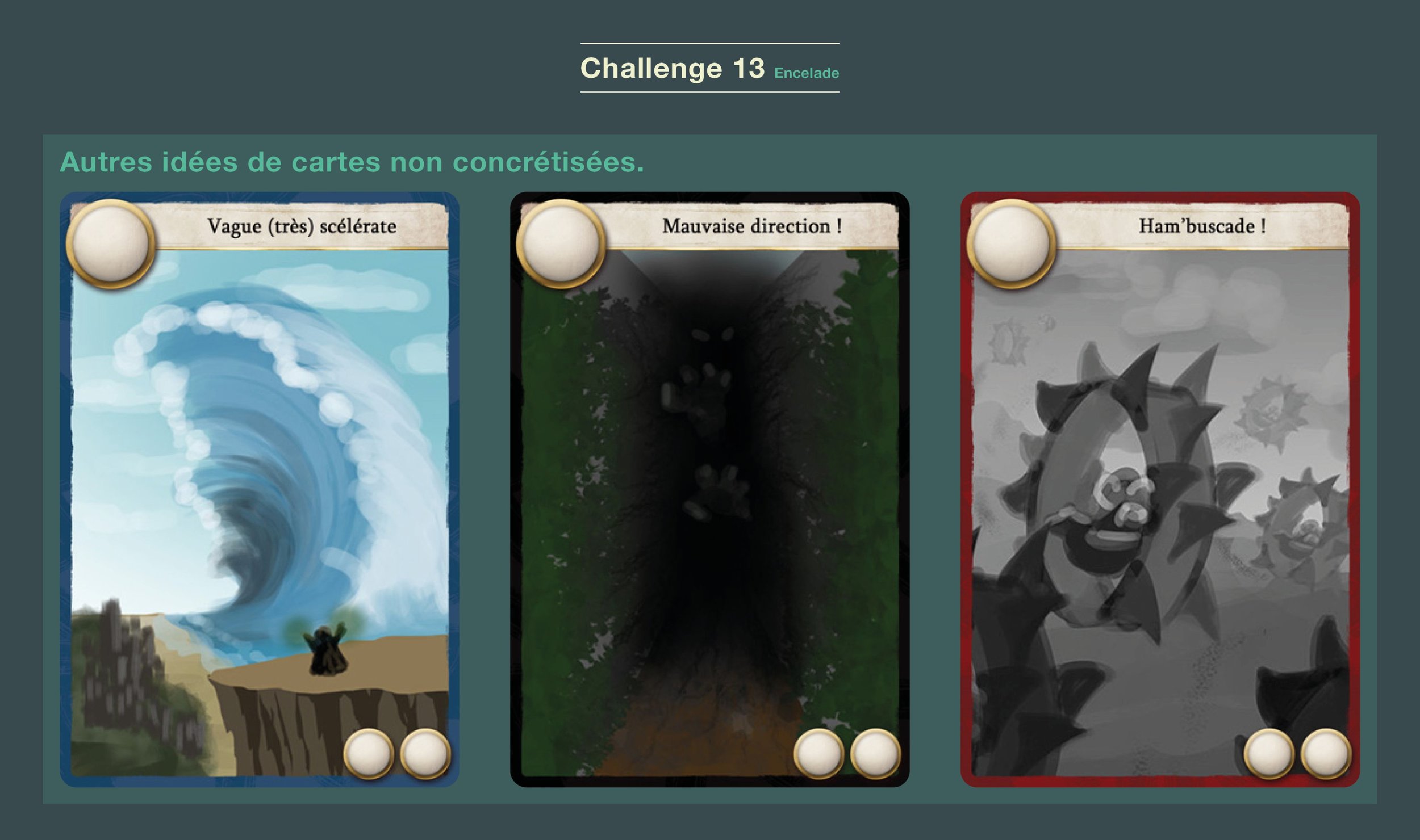 Encelade 1,327 Posté(e) 23 mai 2021 Merci @z.b35 pour tes encouragements ! Pour les deux cartes restantes je souhaite partir sur quelque-chose de plus fun (c'est subjectif ^^), pour garder ma motivation et me pousser à aller au bout de ce challenge 💪. On va dire que c'est mon astuce maison haha. Pour les piafs c'est voulu, le design n'est pas stabilisé mais il va y avoir des trucs pas nets avec eux 😁 Je n'ai pas encore rédigé le résumé de la carte mais grosso modo l'effet sera "Votre adversaire est enfermé dans son passé d'élève tourmenté... trop tard ! Une fois cette carte joué, il ne lui reste que 5 secondes pour jouer son tour". C'est chiant les tablettes, il faut tout le temps en changer... surtout si elles sont en chocolat. Partager ce message Lien à poster Partager sur d’autres sites More sharing options...