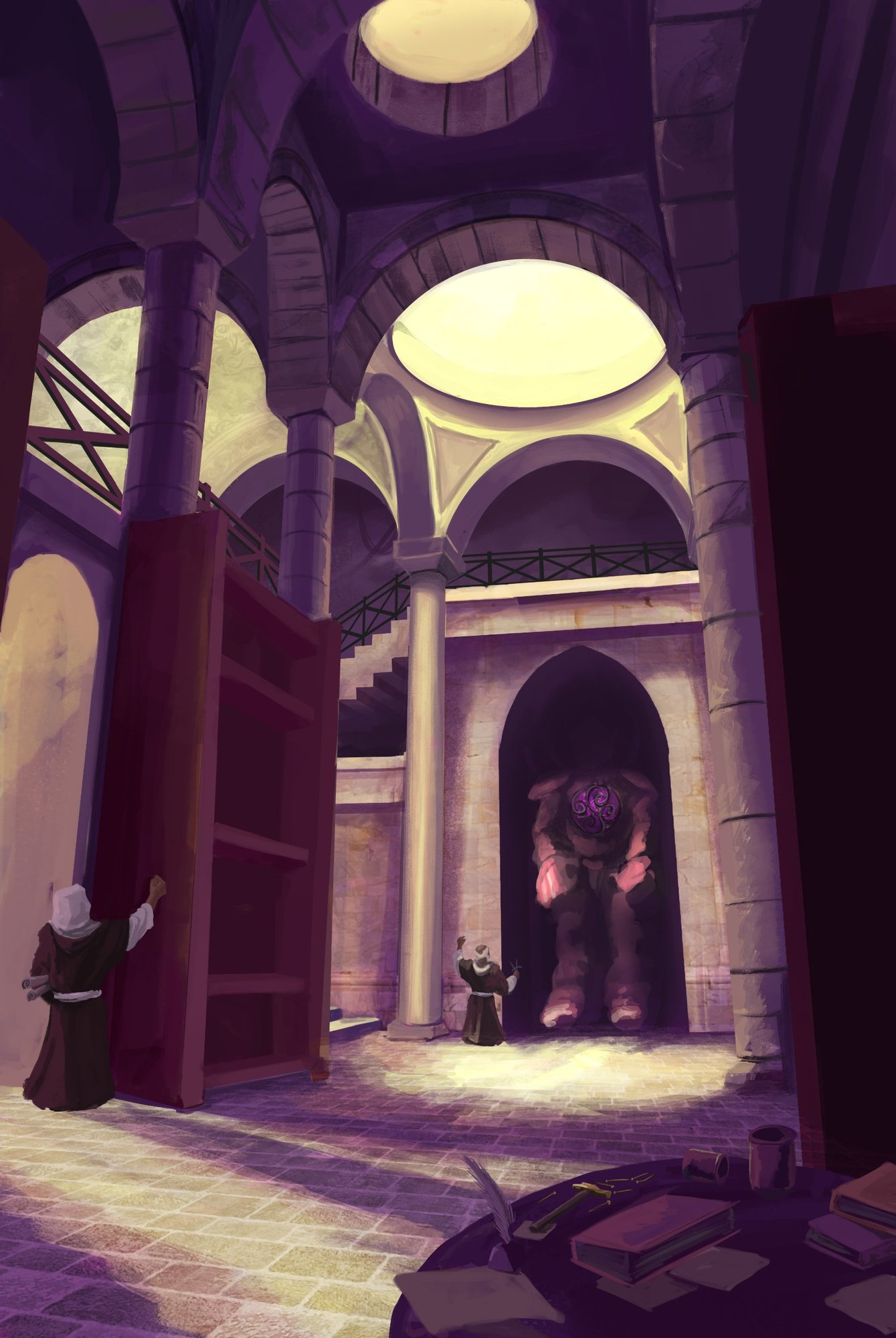 Teo Lehog 2,176 Posté(e) 3 mai 2021 Salut, je lance un ptit sujet pour poster mes WIP pour le challenge 13 Pour commencer j'avais envie de me mettre un peu plus sérieusement au décor et essayer de test des nouveaux trucs dans mon process. Pour la première carte, j'ai fait pas mal de recherche de brief pour savoir ce que je voulais faire et finalement, je vais commencer par celui ci : Grands Thermes Sylvestres : Faction verte Une zone pour se baigner et se reposer, situé dans la canopée de la jungle, composer de plusieurs bassins, l’architecture rappelle les thermes romains mais est construit en harmonie avec la nature. On peut y retrouver de nombreuses factions du peuple des forets, l’ambiance est agréable et reposante. Voilà pour le speech j'ai bossé qq idees de compositions, pour l'instant je sais pas trop vers ou je vais aller exactement 4 J'ai commencé à live sur Twitch, hésitez pas à me faire un coucou -- Twitch--- Fais moi un coucou là bas si tu veux voir plus de mes travaux Instagram - ArtStation - Twitter - DeviantArt Partager ce message Lien à poster Partager sur d’autres sites More sharing options...