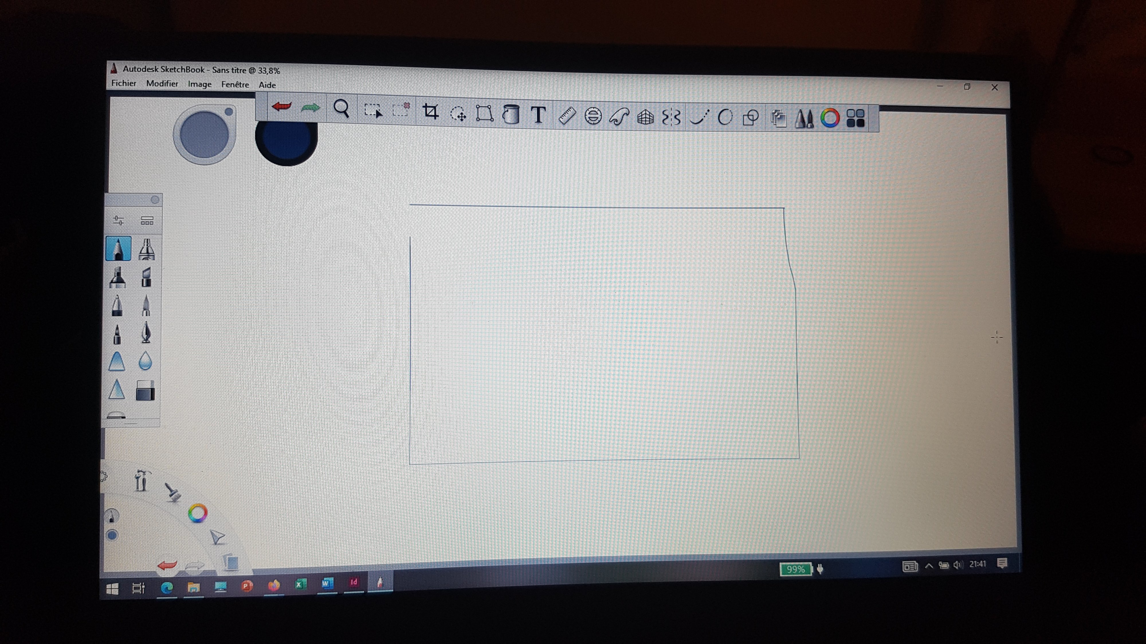 ApollineCarrdeBonnechose 0 Posté(e) 5 décembre 2021 Bonjour, je rencontre un problème quant à la taille de mon espace de travail sur Sketchbook. En effet lorsque je dessine, j'utilise la totalité de la place disponible sur ma tablette, cependant le dessin affiché sur mon écran d'ordinateur est "enfermé" dans un rectangle au milieu de la plage. Cela ne me laisse que très peu de liberté dans mes créations. Je ne pense qu'il s'agisse du format de document puisque je l'ai déjà changé plusieurs fois ... Pouvez-vous m'aider ? Partager ce message Lien à poster Partager sur d’autres sites More sharing options...