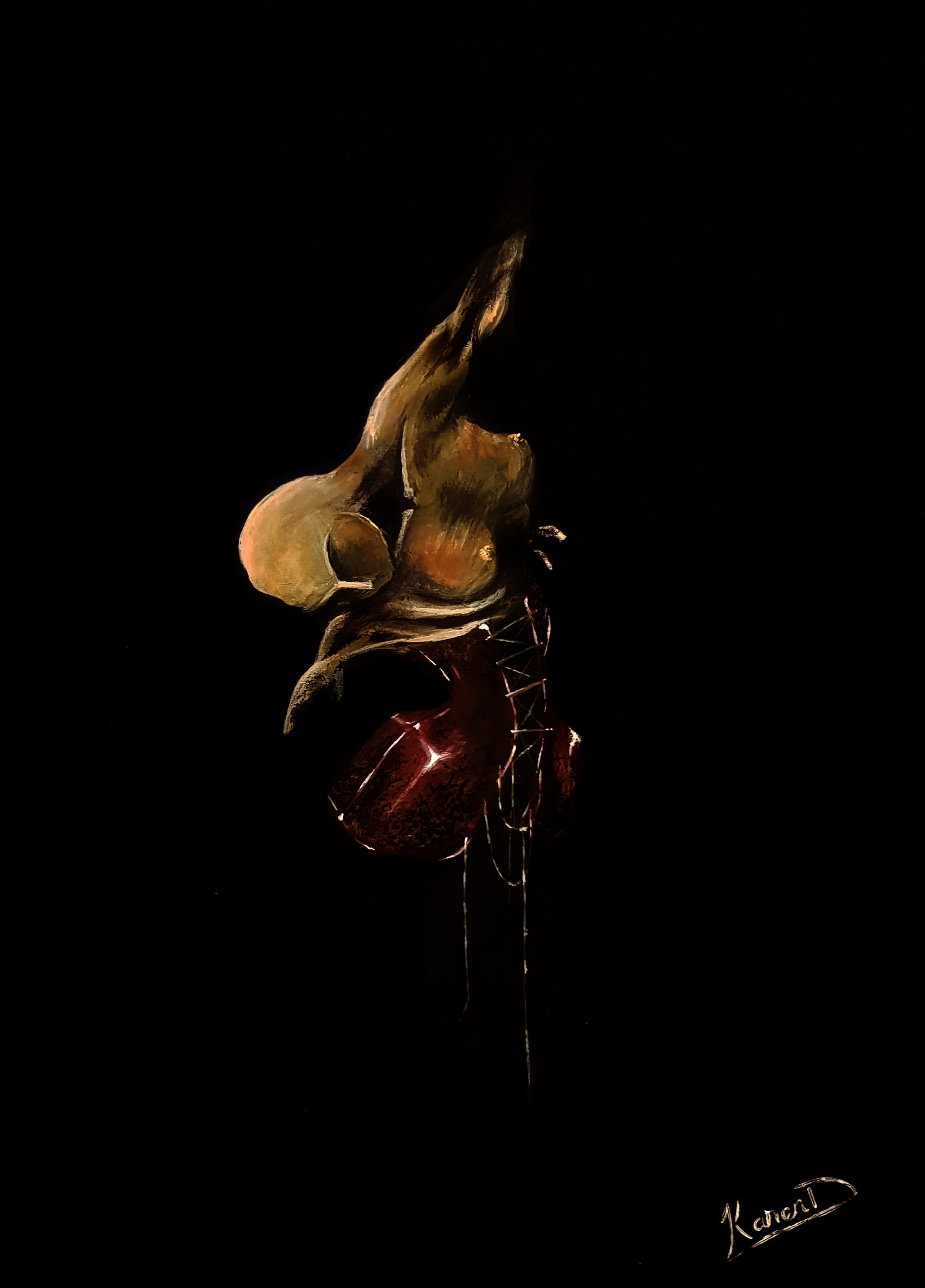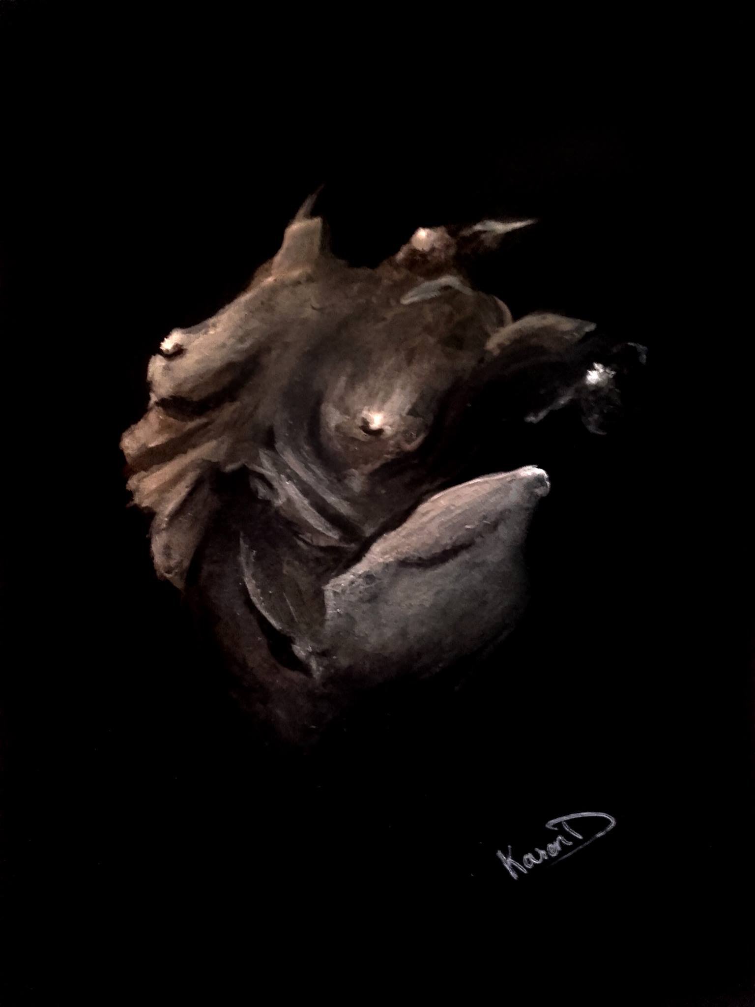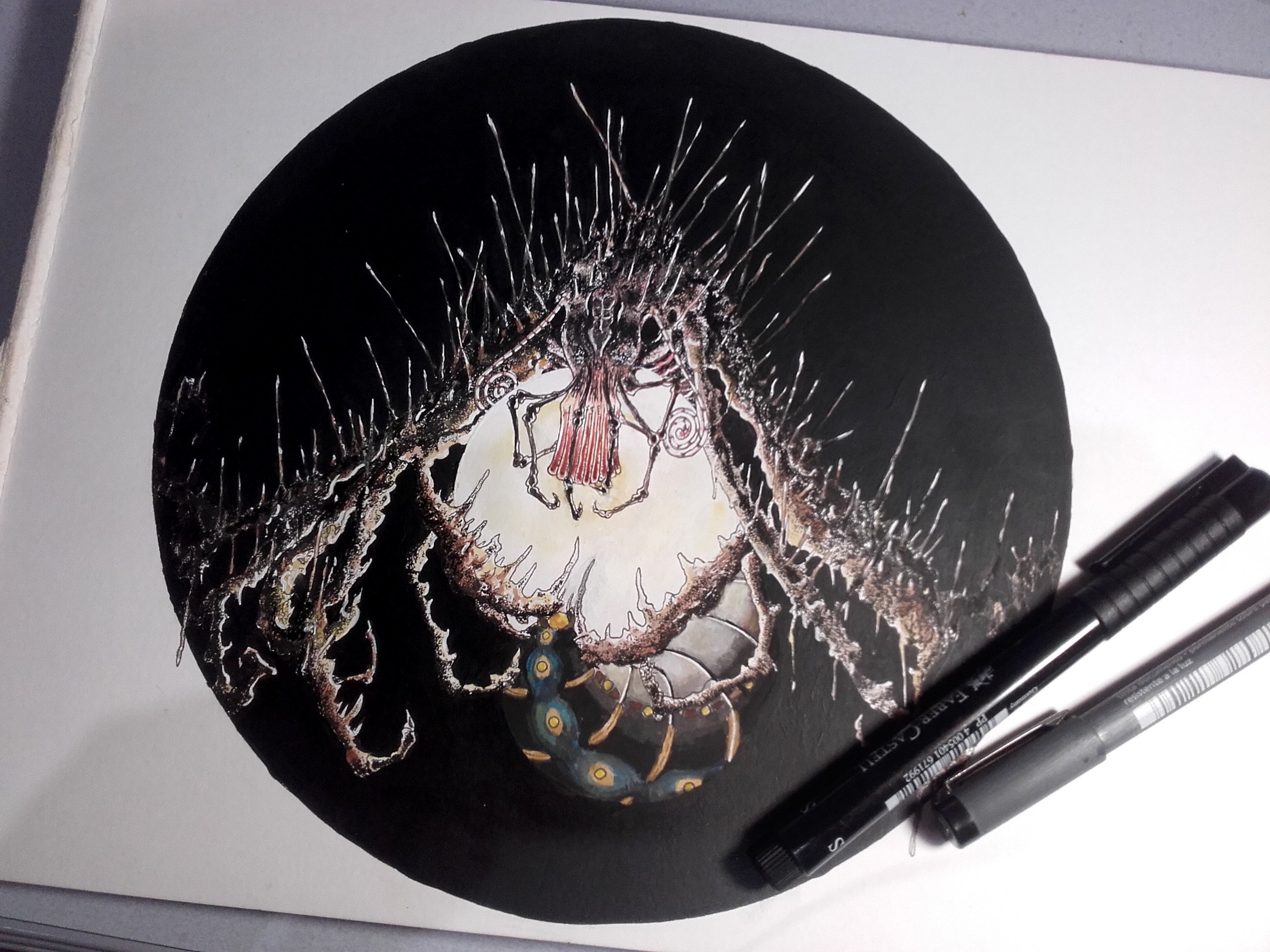 Je pratique les arts graphiques depuis un paquet d'années, au pif je dirai 26 ans. Mais le genre de pratique amour / haine, ne parvenant jamais à trouver complètement ce que je recherche dans les médiums utilisés. L'aquarelle, y a trop de flotte. L'huile, c'est trop gras (pas besoin de ça.). Le pastelle, manque de précision ("ouiii mais c'est parce que tu manques de pratique"... Chut, Marie-Christine, je finis. Merci. ). J'ai fini par me trouver à peu près dans la peinture acrylique, mais il me manque encore quelque chose.