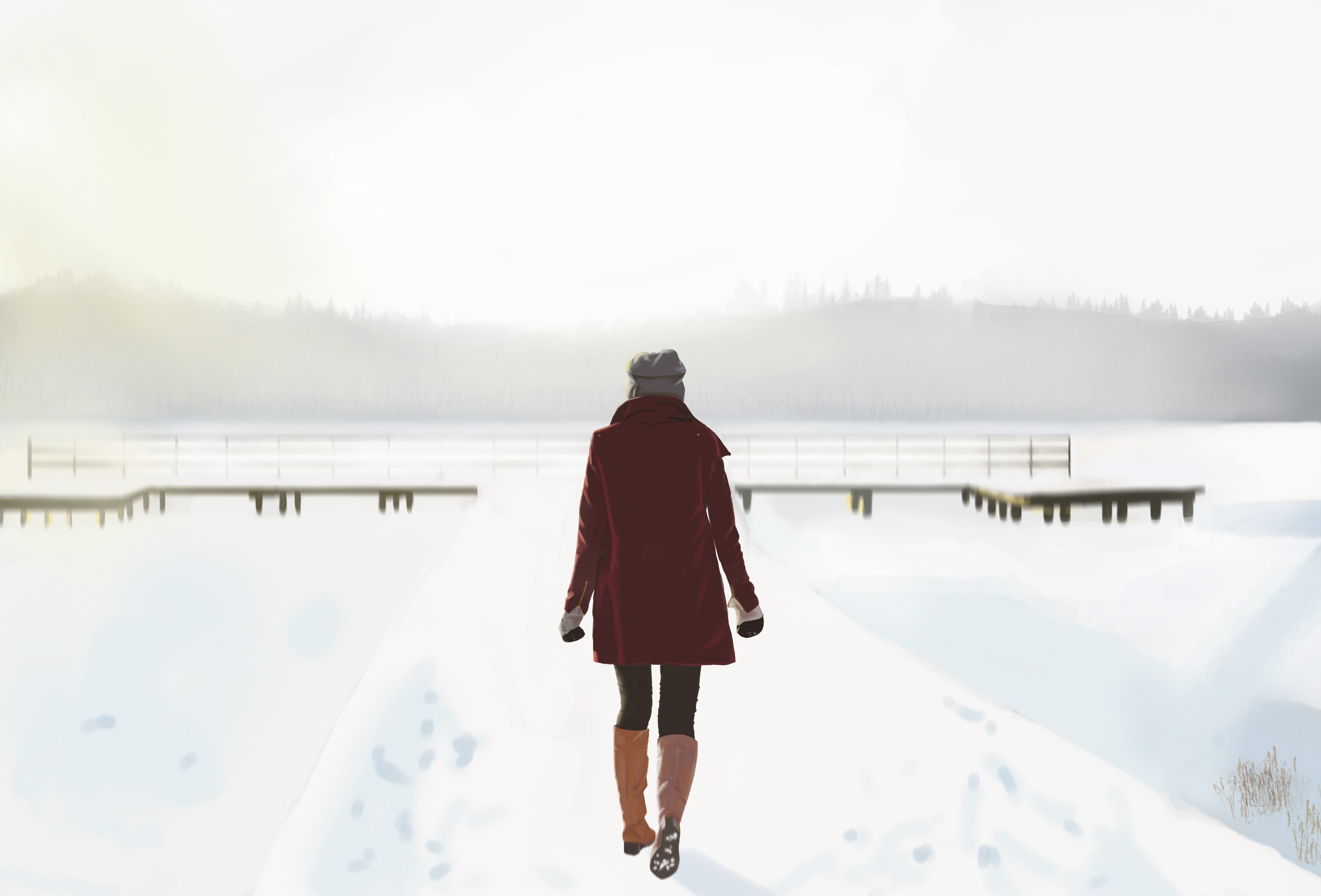 Tu peux accentuer la prise de lumière sur le manteau et le bonnet pour qu'elle soit plus rouge saturé sur le manteau et jaune/blanche sur le bonnet.