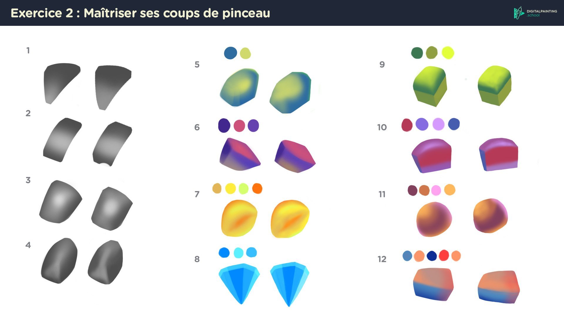 Pour ta forme 11 le violet foncé est trop foncé et la partie entouré il faudrait que ce soit plus flou.