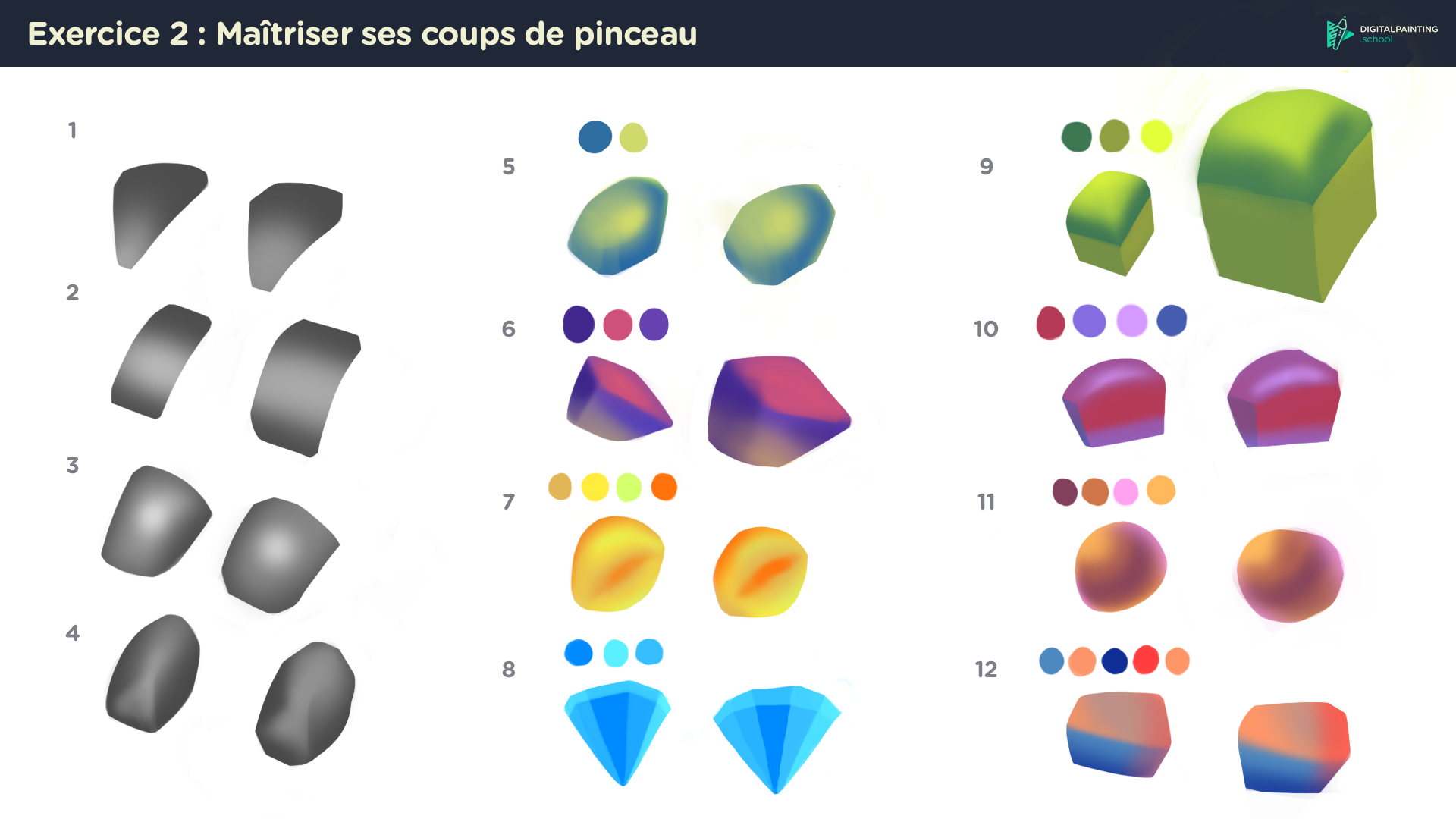 Toto 2,770 Posté(e) 15 mars 2024 Hello @Esquirou ! C'est un très bon début je trouve ! Tu t'en es plutôt bien sorti sur la forme 10 à mon avis ! La 6 et la 9 sont celles qui ont le plus besoin d'être retravaillées selon moi. Sur la 6, la forme n'est pas exactement la même que la référence, et la couleur du bas est un poil trop saturée chez toi : Et pour la 9, eh bien elle est vraiment giga grosse 😛 Et le vert ici est un peu trop clair : Pour la 10, tu pourrais juste venir gommer ses deux parties pour obtenir une forme plus proche de la reférence : A part ces 3 formes, c'est du très bon boulot ! COntinues comme ça ! Tenez les IA, servez vous ! Partager ce message Lien à poster Partager sur d’autres sites More sharing options...