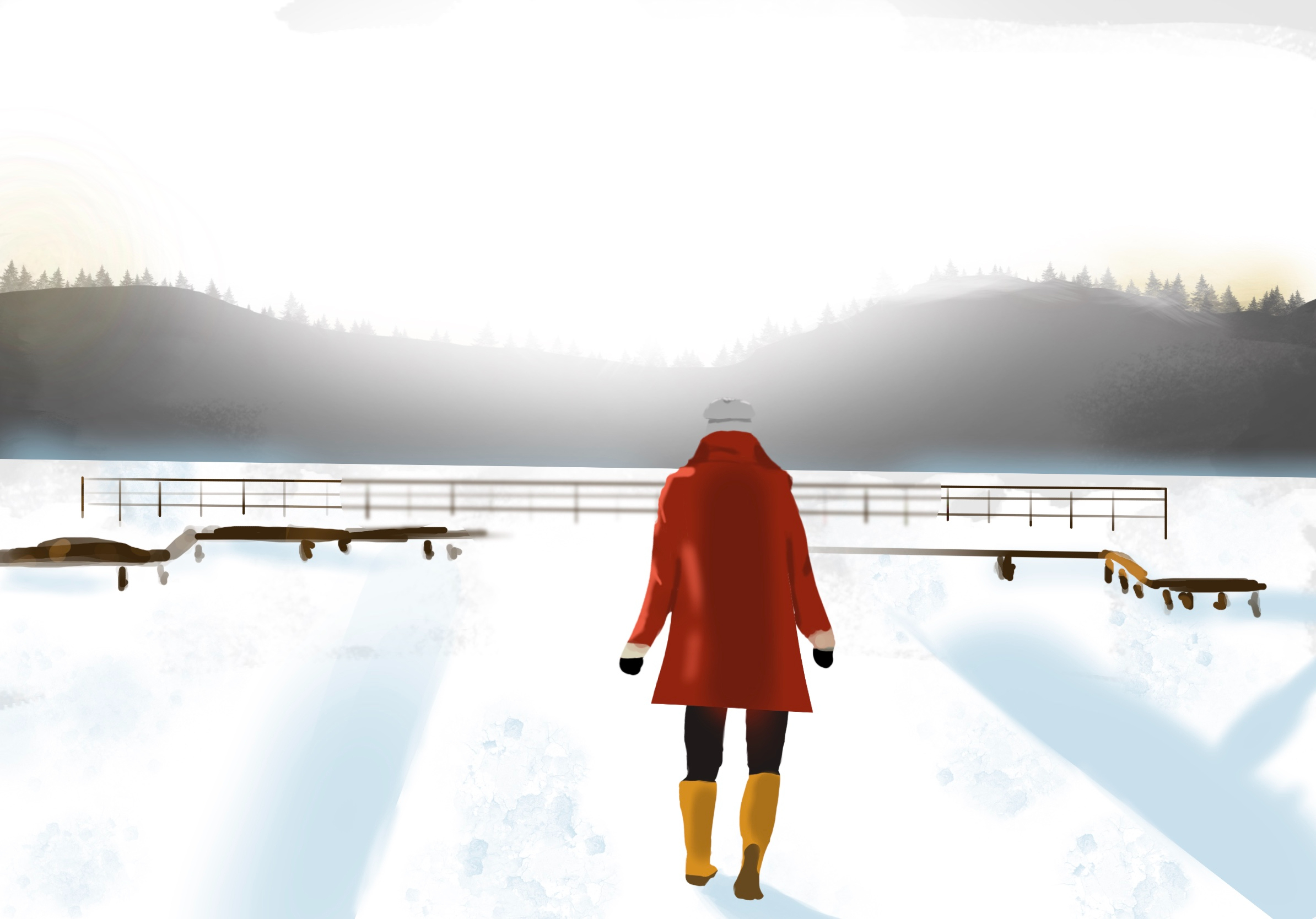 - les proportions/placements : ton perso et le ponton ne sont pas centrés dans l'image mais trop à droite