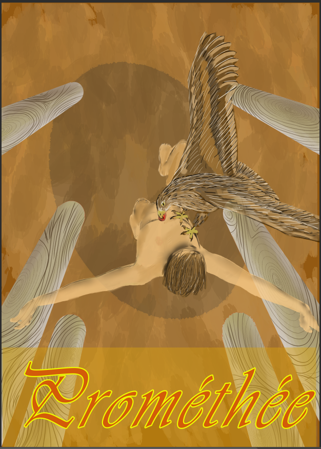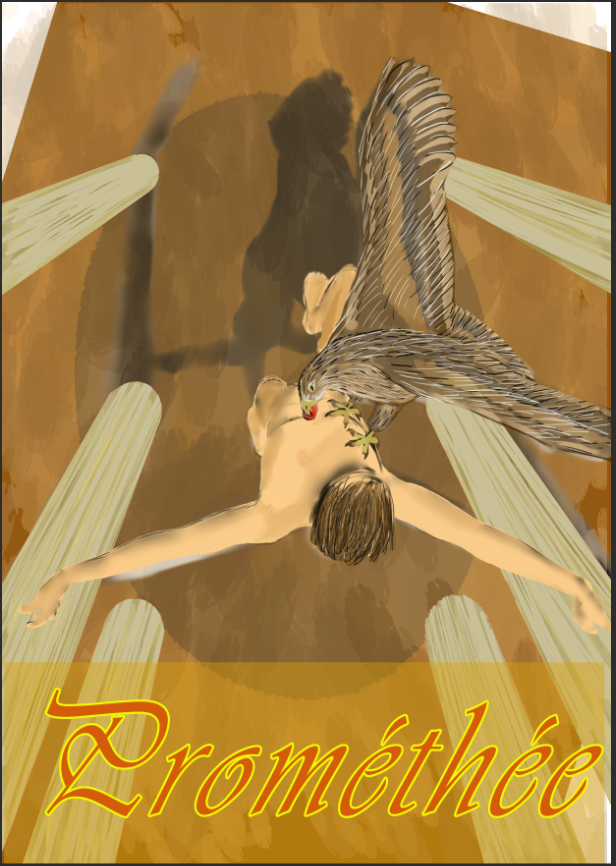 AlexChq 5 Posté(e) 2 novembre 2024 Bonjour, j'ai commencer depuis une semaine sur Prométhée, ''Figure héritée du « transmetteur du feu », Prométhée est surtout connu pour avoir dérobé le feu sacré de l'Olympe pour en faire don aux humains. Courroucé par cet acte déloyal, Zeus le condamne à être attaché à un rocher sur le mont Caucase, son foie dévoré par l'Aigle du Caucase chaque jour, et repoussant la nuit.'' ( source wiki) ''Prométhée a ainsi symboliquement apporté la technique aux hommes. Ce mythe montre que ce qui semblait être une faiblesse de l'homme, à savoir son dénuement originel, est en fait ce qui lui a permis de devenir la seule espèce libre de se réinventer en permanence.'' ( source maxicours.com) Je commence le digital painting depuis le 22 octobre, j'ai longtemps dessiné au crayon à papier, sans jamais réussir mes ancrages, ni mes couleurs. je suis ouvert aux critiques constructives, dans mon esprit c'était en vue première personne, mais en faisant les premiers traits, j'ai orienter mon perso dans ce sens, avec des colonnes qui lui bloquent les mains. PS, merci à l'équipe de nous proposer des challenges sympa, et bravos aux artistes ! Partager ce message Lien à poster Partager sur d’autres sites More sharing options...