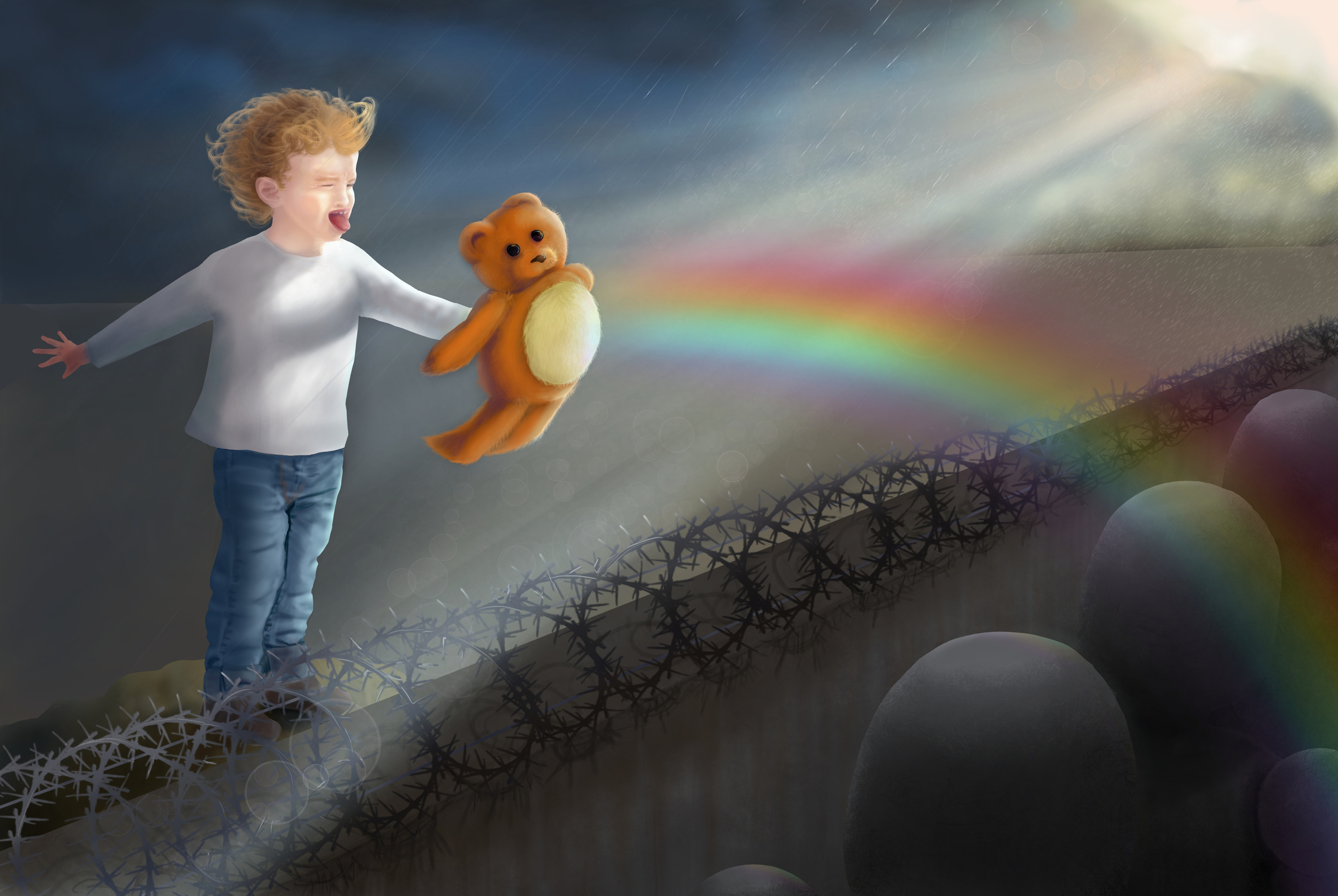 Mat-Bzh 47 Posté(e) 8 mai Hello, les barbelés sont ok pour moi, ça ne choque pas. Pour la ligne d'horizon, je suis d'accord avec les avis qui proposent de la descendre un peu. Je dirais que ça ajouterai du "sens" à l'illu si l'enfant dépasse de la ligne d'horizon (légèrement). Il se démarquerait ainsi immédiatement des robots, ce qui renforcerait le propos, je crois. 1 Partager ce message Lien à poster Partager sur d’autres sites More sharing options...