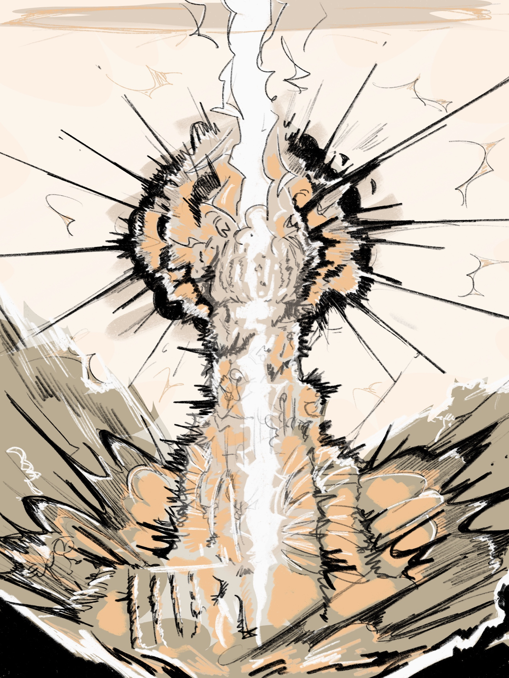 ApostroKe 4,987 Posté(e) il y a 12 heures (modifié) Bonjour tout le monde ! @stefou Whooah ça c'est de l'explosion de couleur bravo ❤️ ! Et très bonne idée de reprendre la vache sacrée indienne. @Gopperus Ah ah super c'est très cool le rendu ! Je me demande si sa maison est faite en briques de C4 😆. Pour ma part voici ma participation. L'année dernière j'avais repris pour le thème Journal la mascotte du groupe de metal Megadeth en train de lire avec une bombe nucléaire en train de tomber en arrière plan. Je voulais faire presque une continuité avec le thème d'aujourd'hui, en reprenant de nouveau Vic Rattlehead et la bombe qui a fini par exploser. Mais j'hésite vraiment entre la couleur et le noir et blanc 🤔. Explosion de couleurs ou le blanc extrême et sinistre de l'explosion nucléaire comme les vidéos de test de l'époque... Modifié il y a 12 heures par ApostroKe 19 1 Partager ce message Lien à poster Partager sur d’autres sites More sharing options...