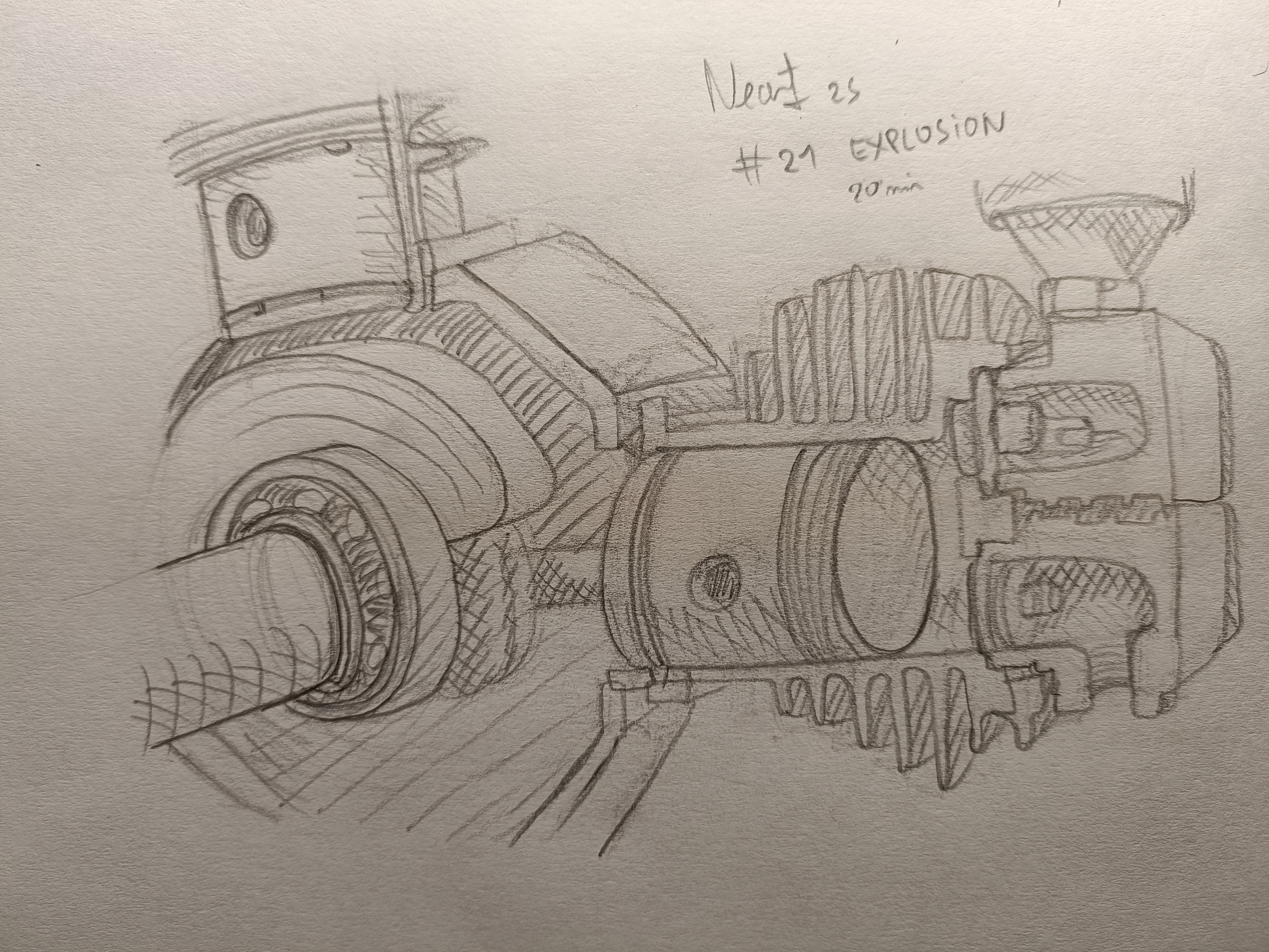 neant 518 Posté(e) il y a 1 heure (modifié) Bonsoir tout le monde ! @Guismo comment ne pas penser en effet à Jiinx avec ce mot, joli croquis ! @Haeresis l'effet de perspectives est iiimpressionnant ! @Image.In.R cela m'évoque une explosion de tissu de jonglage, c'est très sympa ! Entre deux révisions de physique voici pour ma part un petit croquis de morceau de moteur à explosion... Modifié il y a 1 heure par neant 8 1 Partager ce message Lien à poster Partager sur d’autres sites More sharing options...